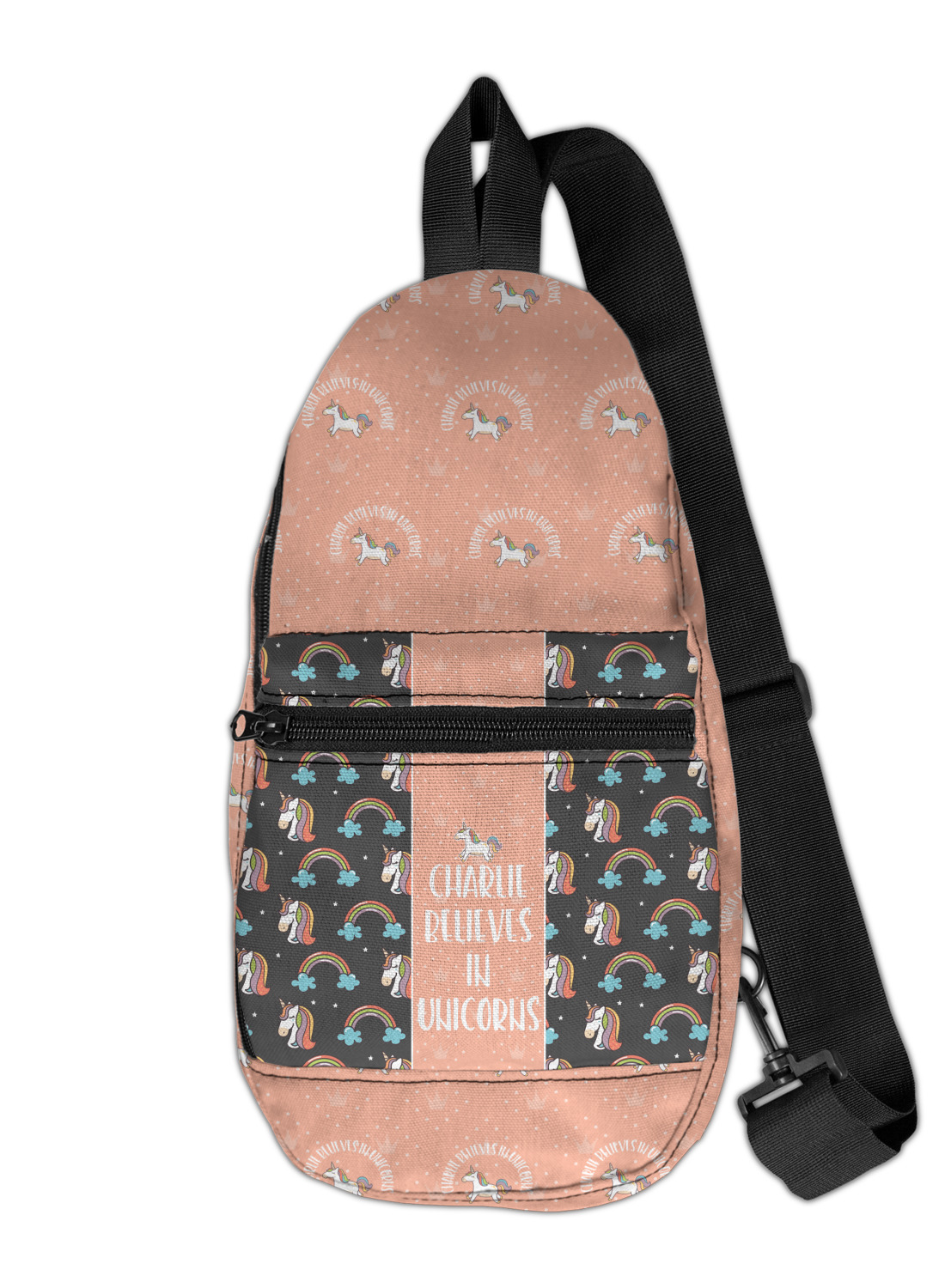 These sling bags are made from a durable polyester canvas. The fabric is printed with your design, then cut and hand sewn right here in the USA.