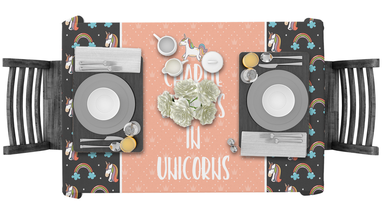 Whether you want to create a formal or informal dining room ambiance our personalized tablecloths will do just the trick!! Pull them out for the holidays, dinner parties, or use them everyday. We have a plethora of designs that cater to kids, teens, and adults; all tastes can be satisfied!!