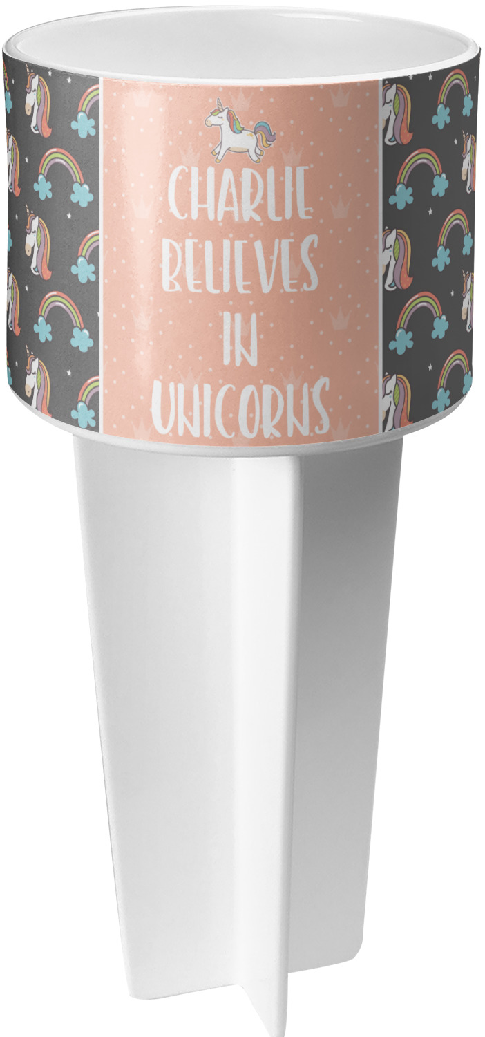 This cup holder has a large stake at its bottom that anchors it to the sand or ground below, while the cup holder rests above the stake. The entire drink holder is made of durable plastic and displays your customization around the cup holder portion. We sell these personalized beach spikers in two different colors: black and white.