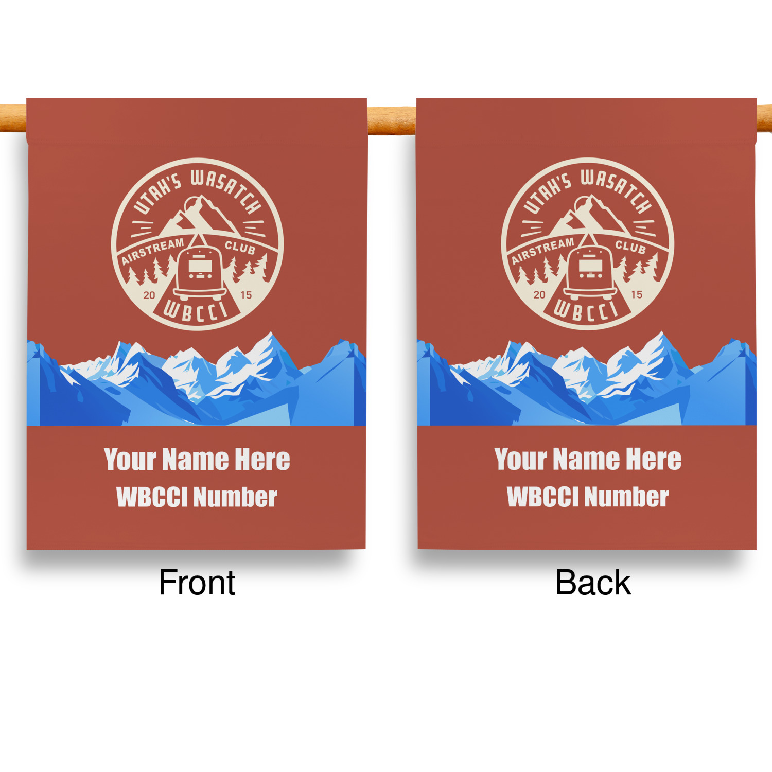 These custom garden flags are made of a durable, double-ply, polyester weave, allowing them to withstand the elements year round. The small flags measure at approximately 12 by 18 inches. The large flags measure out to 28 by 37 inches. You can order these decorative flags with your customization printed on the front only, or the front and back.