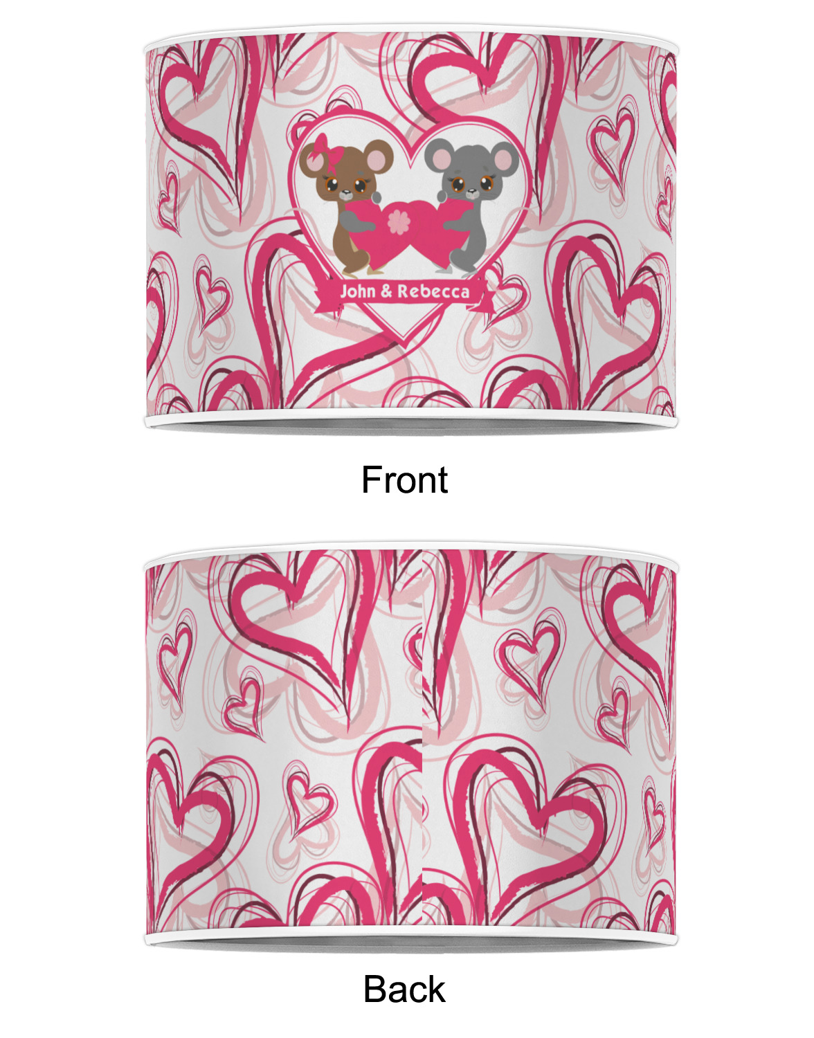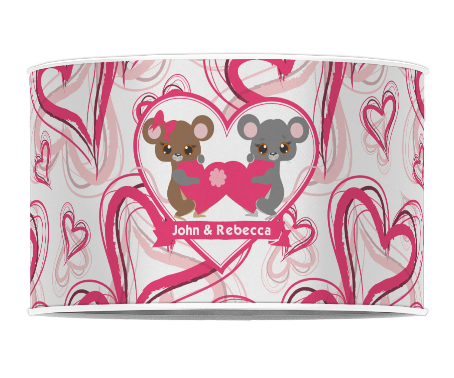 Our personalized drum lamp shades are available in 2 different materials: Poly-film or fabric. Poly-film lamp shades come with the option of white or black border trims to best match your customized design. Fabric lamp shades are finished with a rolled edge for a clean modern look.