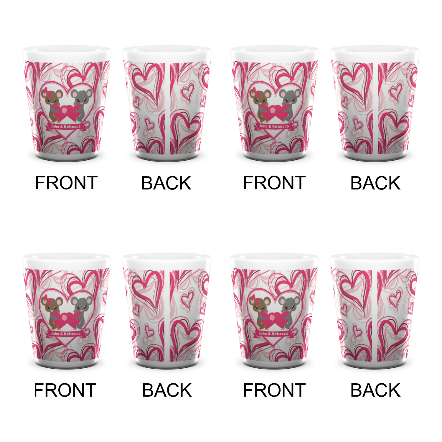 Made from ceramic these shot glasses are printed in full color with the design of your choice. These are a standard 1.5oz size and stand 2.25" tall. Available in a full white ceramic or a two-tone with a black color inside the shot glass. Buy a single or a set of 4, all of which can be designed separately to get you just what you want and need.