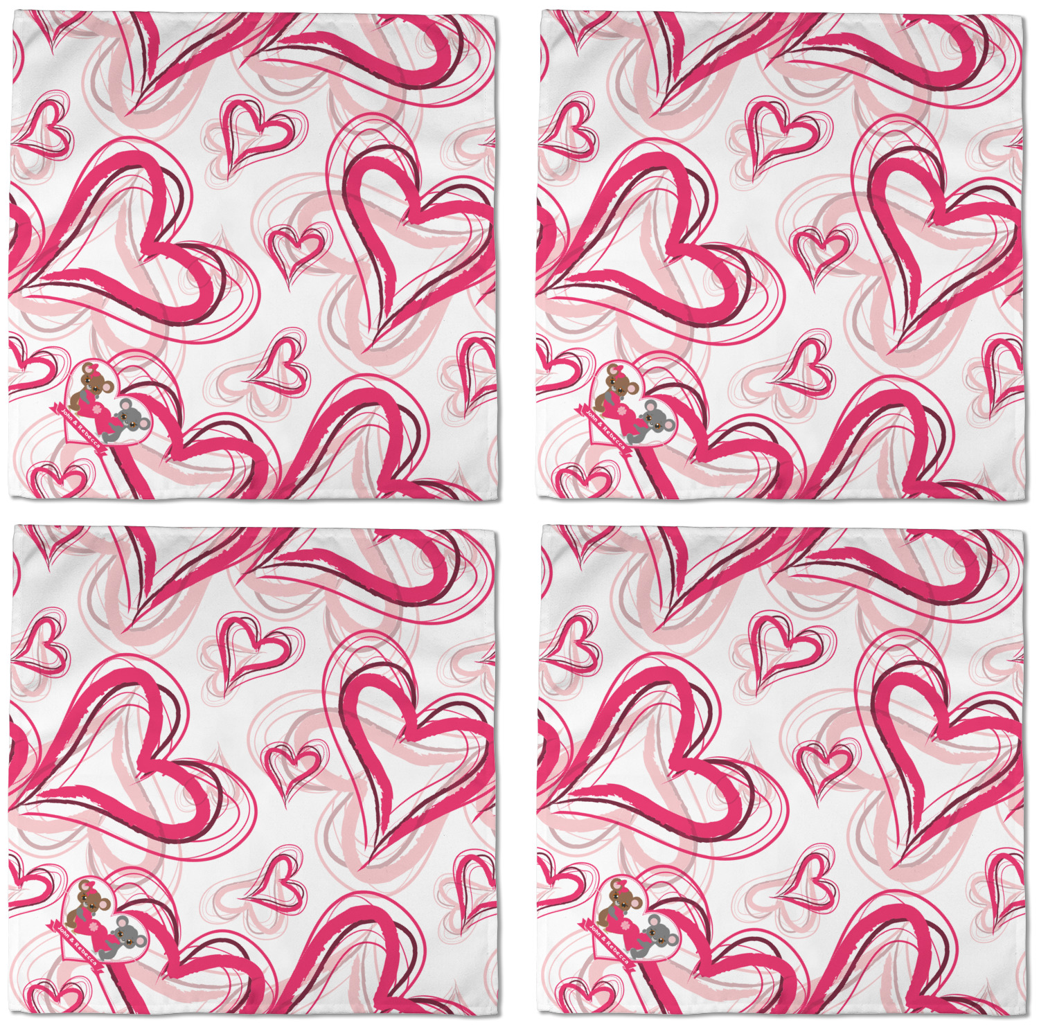 Each customizable cloth napkin is a polyester material guaranteed for long-term use. Since our napkins are cloth, it serves as a great reusable and eco-friendly dining decor. We sell personalized napkins individually or as a set of 4! Print your own unique design on all four napkins, or create four individual designs for each napkin! We offer two different napkin sizes - Cocktail napkins (approx. 10 x 10) and Dinner napkins (approx. 20 x 20). We print your design on one side, perfect for displaying your custom designed lunch napkins in any fold or table setting!