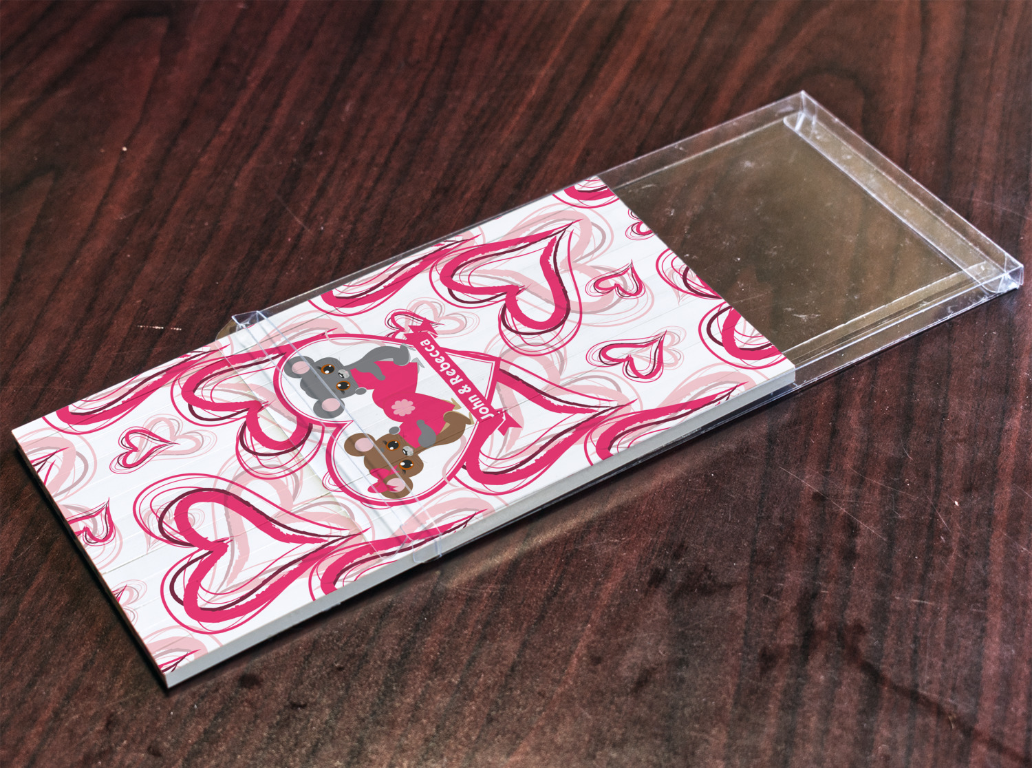Your artwork / design is printed in full color across the top of all 13 pencils. The back and sides of the pencils are white. The pencils come in a clear plastic container / carrying case.