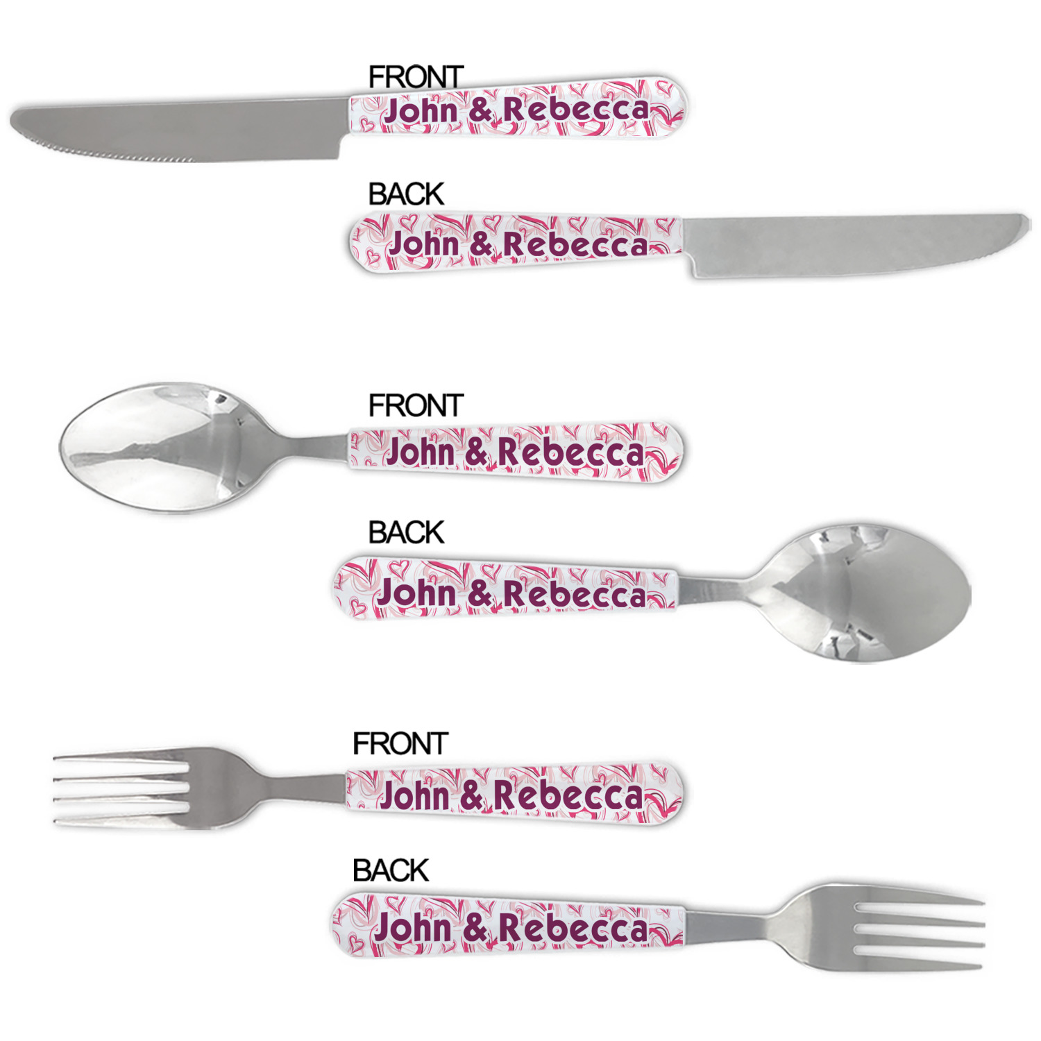 One of those items we all use on a daily basis and never give it much thought - cutlery. Having your own customized set of cutlery adds that special touch. A great addition to our custom plates and drinking pint glasses, this flatware set can be made in the same patterns to match.