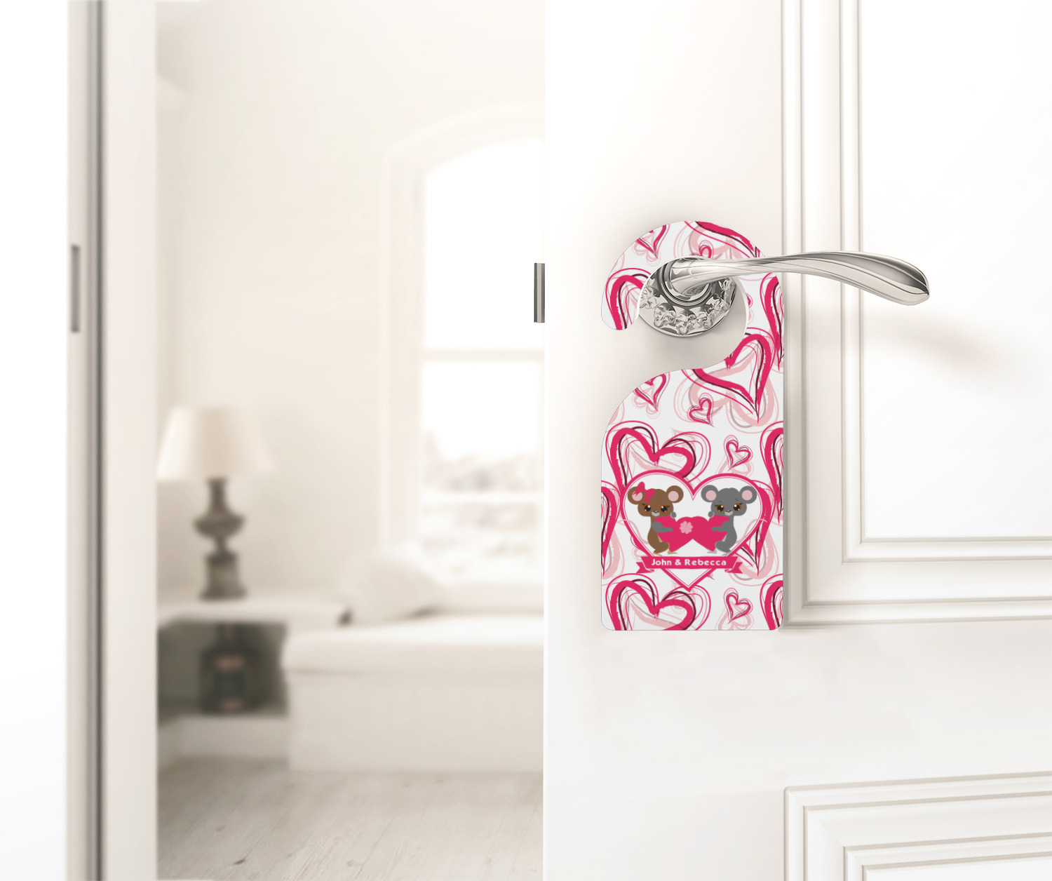 Decorate your door handles with one of our door hangers! These multi-purpose doorknob hangers can be used in a variety of situations; kids can use them to mark their rooms, parents can use them to keep privacy, and they can be used on the doors of nurseries to indicate when the baby is sleeping. Customize a few for some of the rooms in your house today! You could even give these as gifts; give one to the newlyweds in your life, or to a college student so they can use them in their dorm!