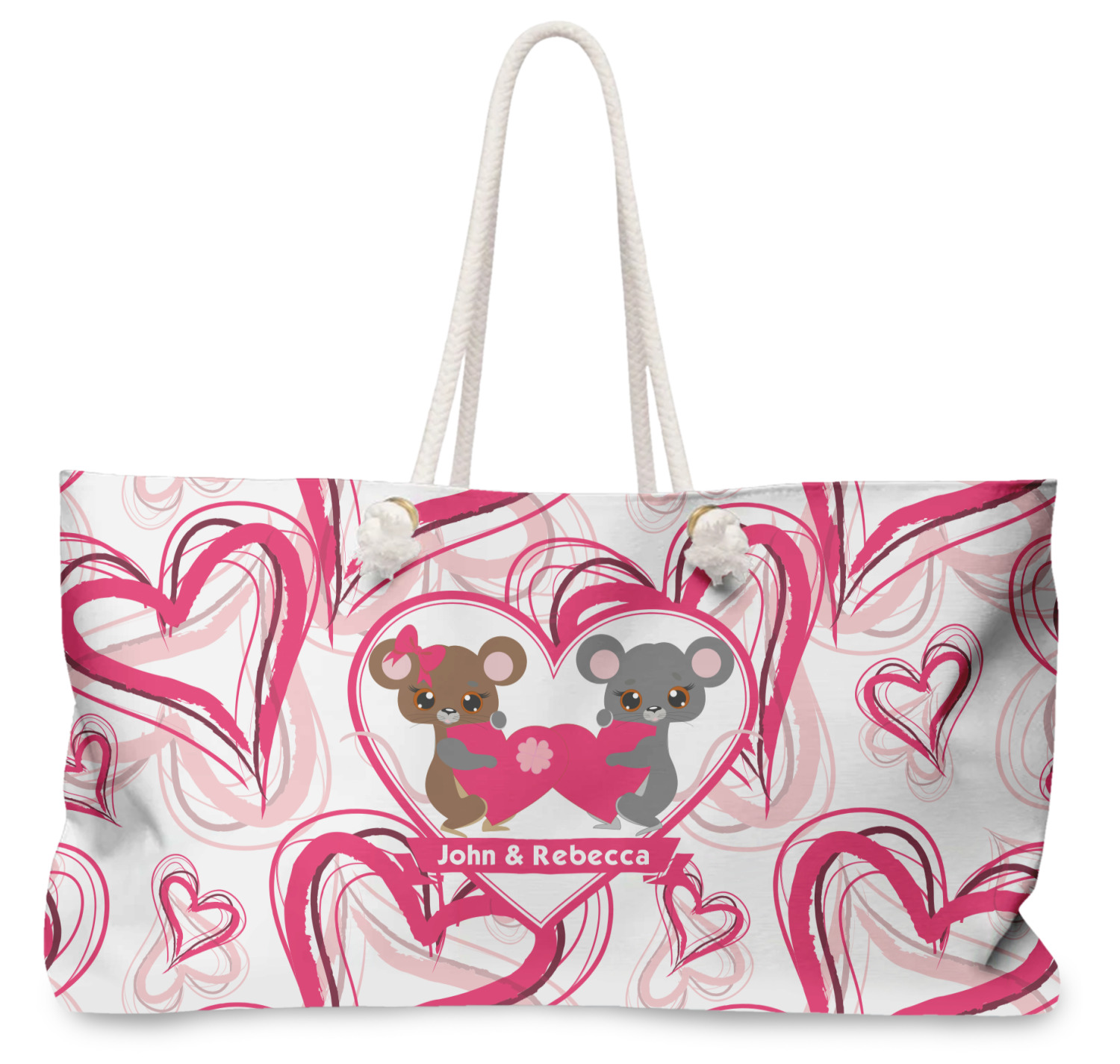 These weekender totes can be customized front and back. The totes are full all over print - so the choice of how background are endless - from beautiful floral or leaf patterns to geometrics or some classic Van Gogh artwork - the possibilities are endless. The totes can also be decorated with photos and logos.