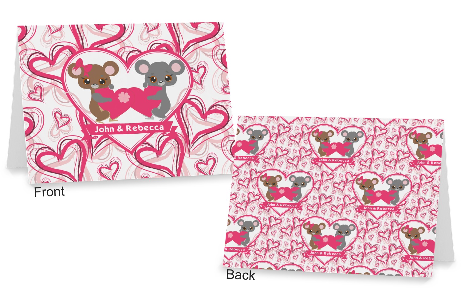 Our custom folded note cards are printed on premium 100lb. card stock and comes with white envelopes. The note card measure 5.5 by 4.25 inches and are blank on the inside for your handwritten message.