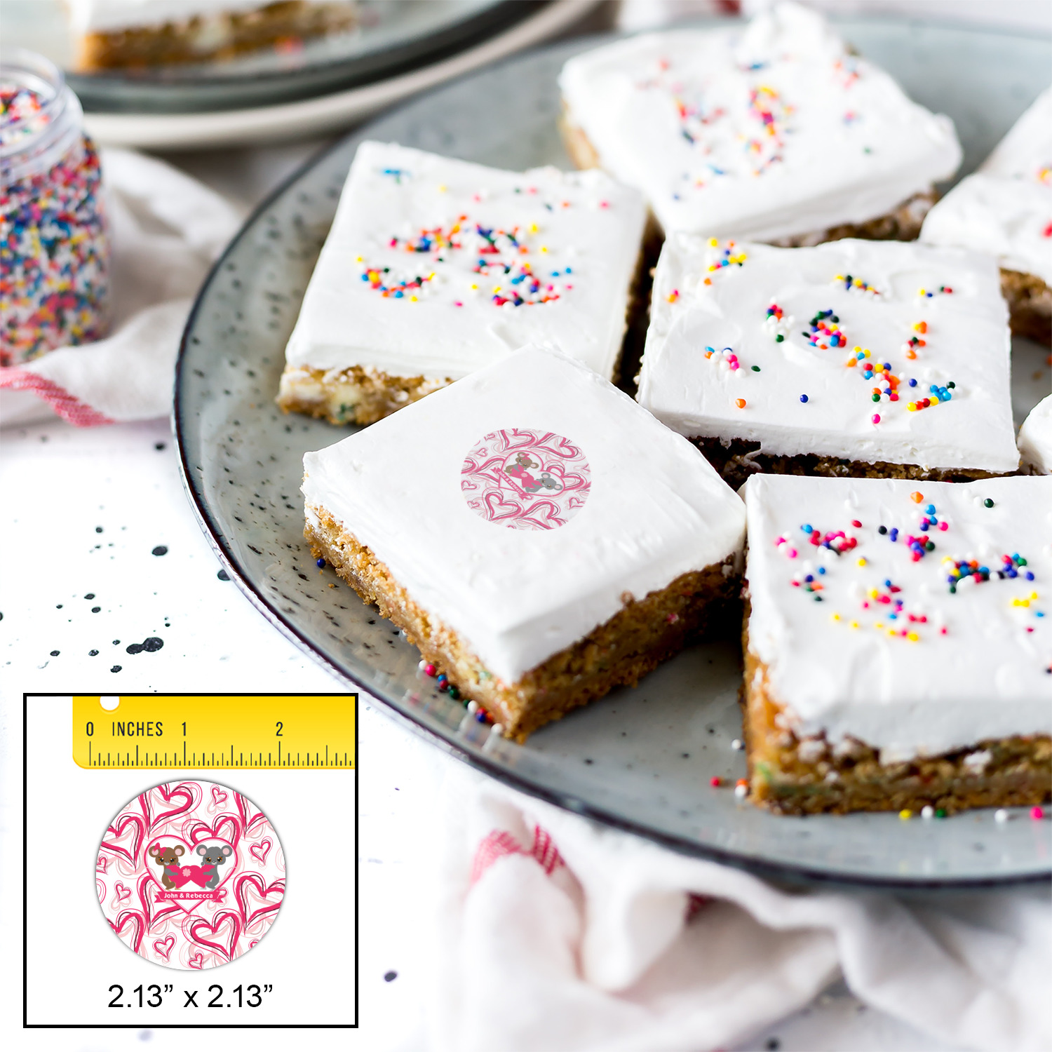 Your customized cookie toppers can be placed on top of any dessert with an icing top.The icing helps adhere the cookie topper to the dessert.