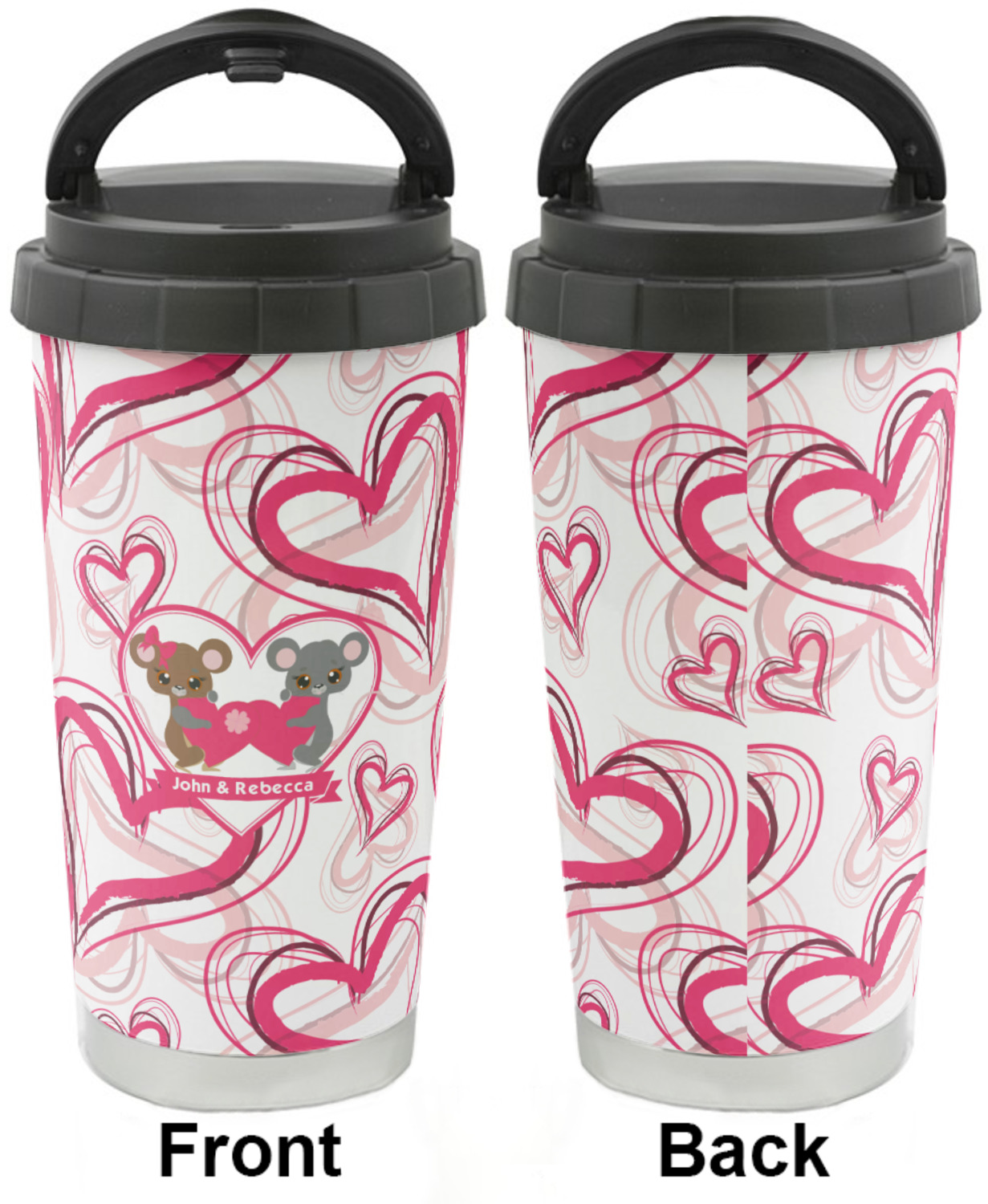 This sleek and tapered 16 oz stainless steel travel cup is a perfect fit in the hand. With the strip of visible stainless steel on the bottom, you'll be feeling classy!