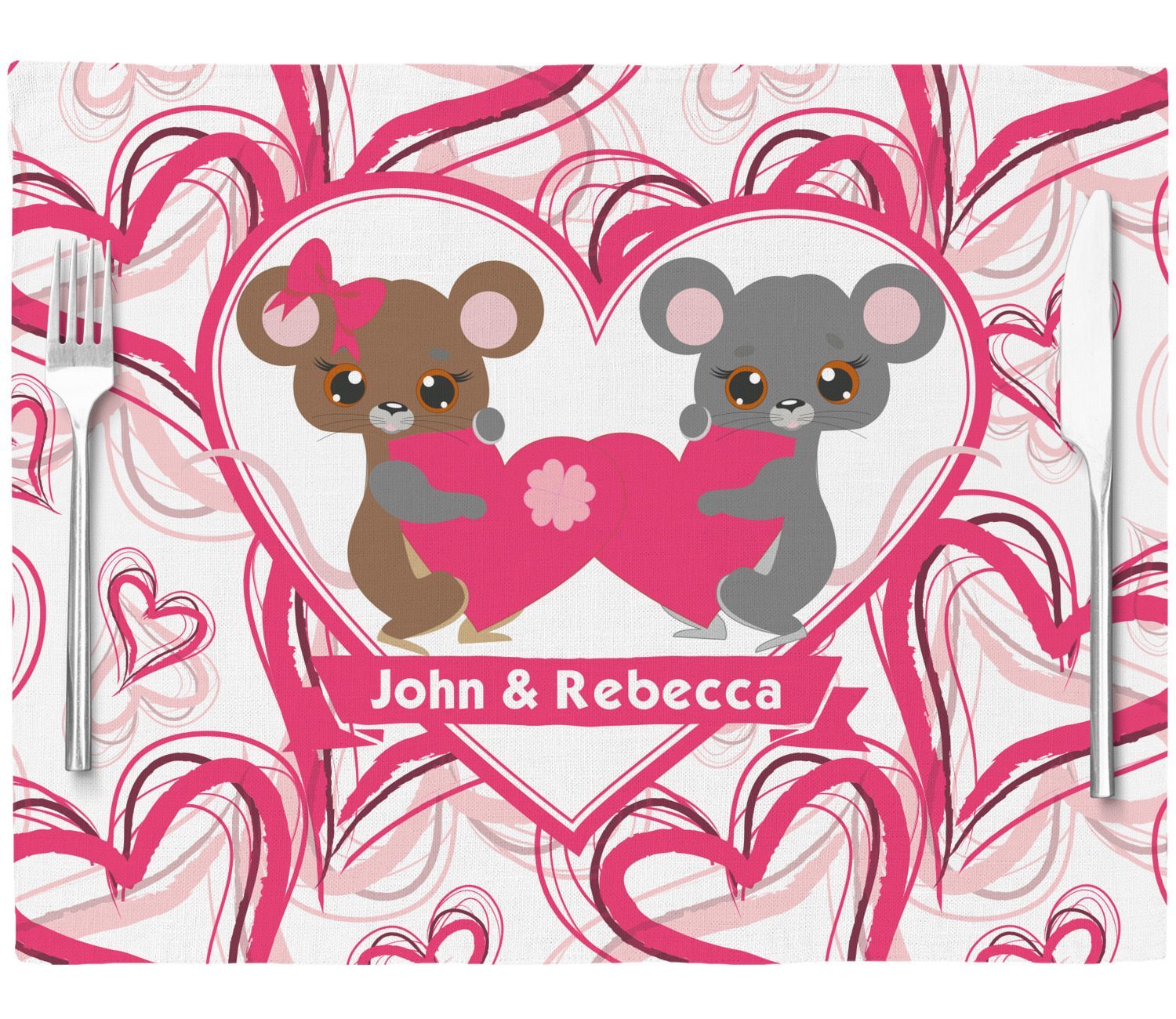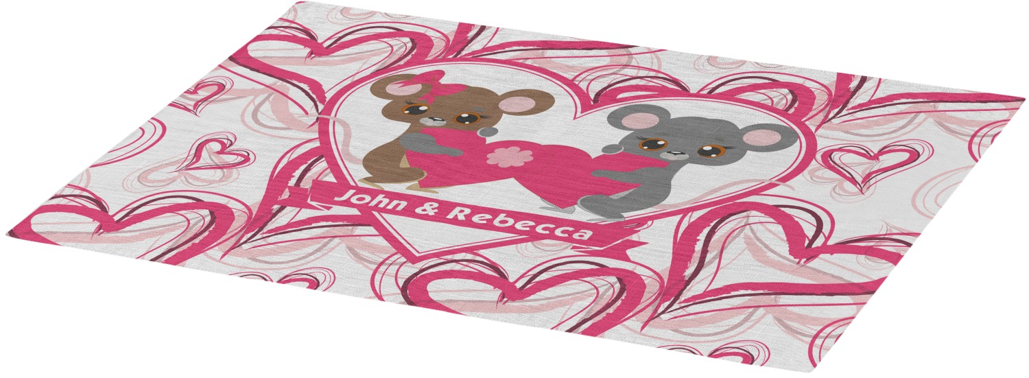 Each of our table mats are a poly twill material with woven burlap detailing. This creates a soft, quality placemat for us to fully print your personalized design across. The woven twill also adds a wrinkle-free surface to set your table! Each customizable placemat is a rectangle shape measuring at approximately 13 x 18 and printed here in the USA.