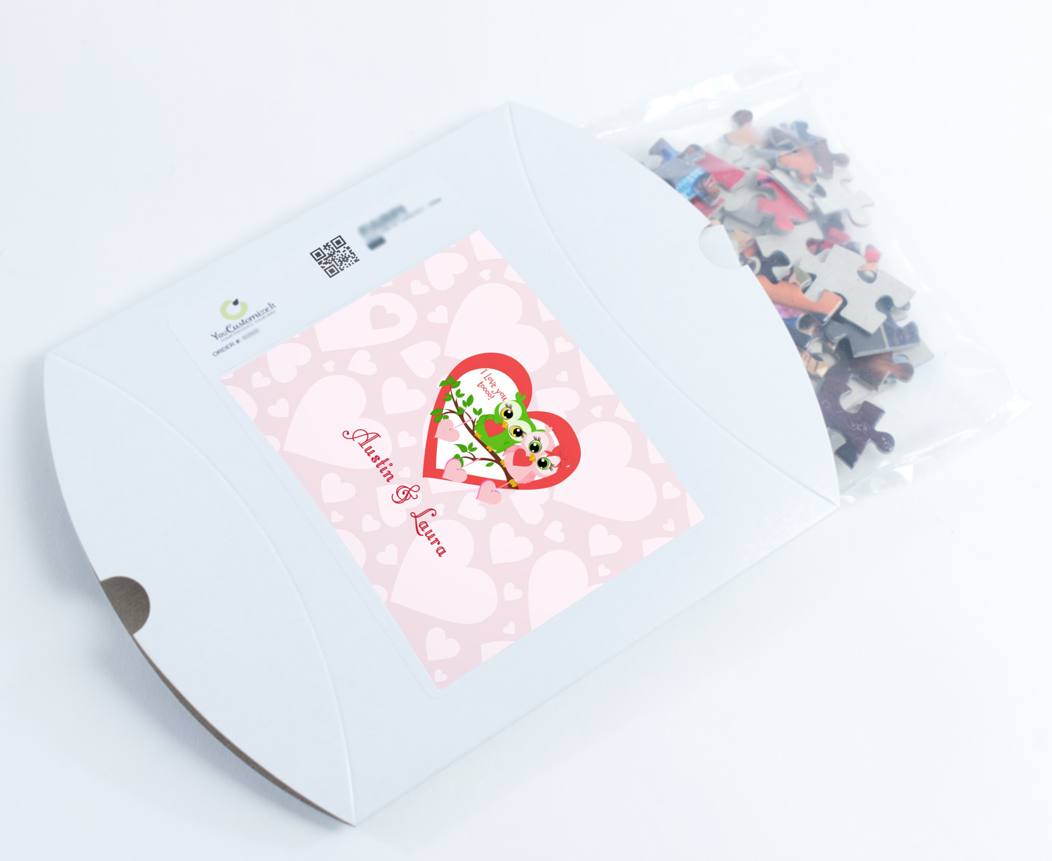 You can also upload your logo or art that you or your kids drew. To create more challenging jigsaw puzzles, you can create a pattern from with your logo or artwork. You can also add other elements such as text or personalization.