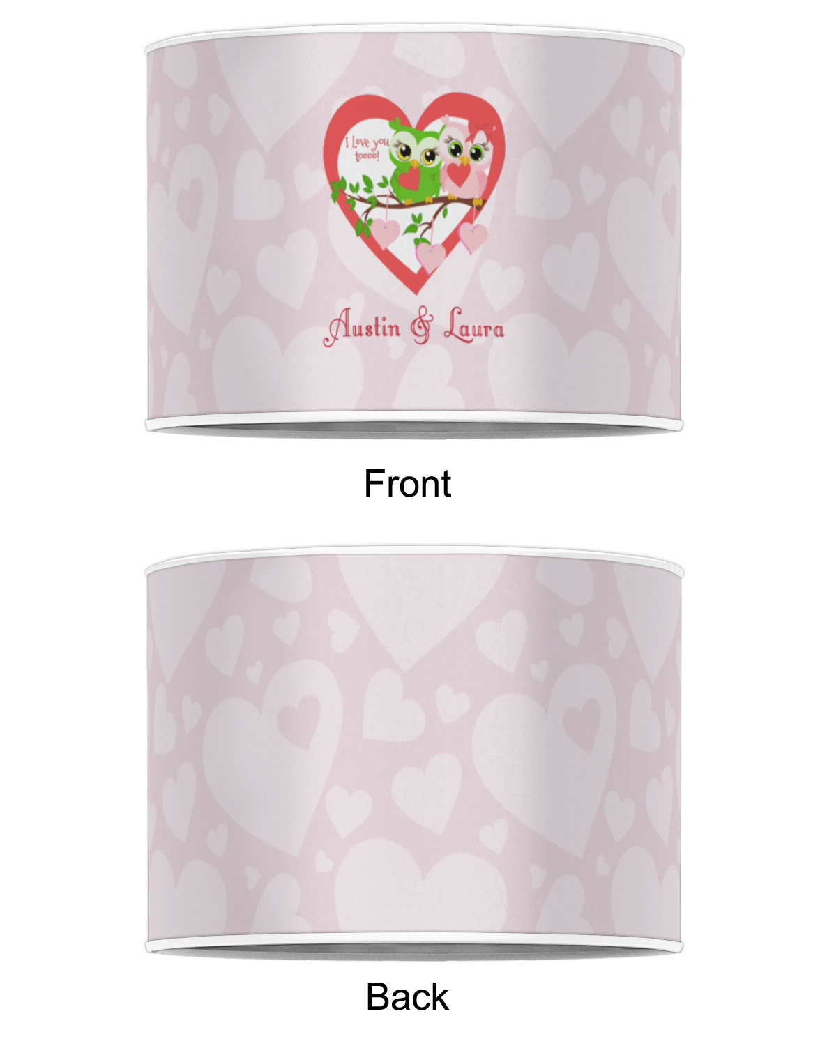 Our personalized drum lamp shades are available in 2 different materials: Poly-film or fabric. Poly-film lamp shades come with the option of white or black border trims to best match your customized design. Fabric lamp shades are finished with a rolled edge for a clean modern look.