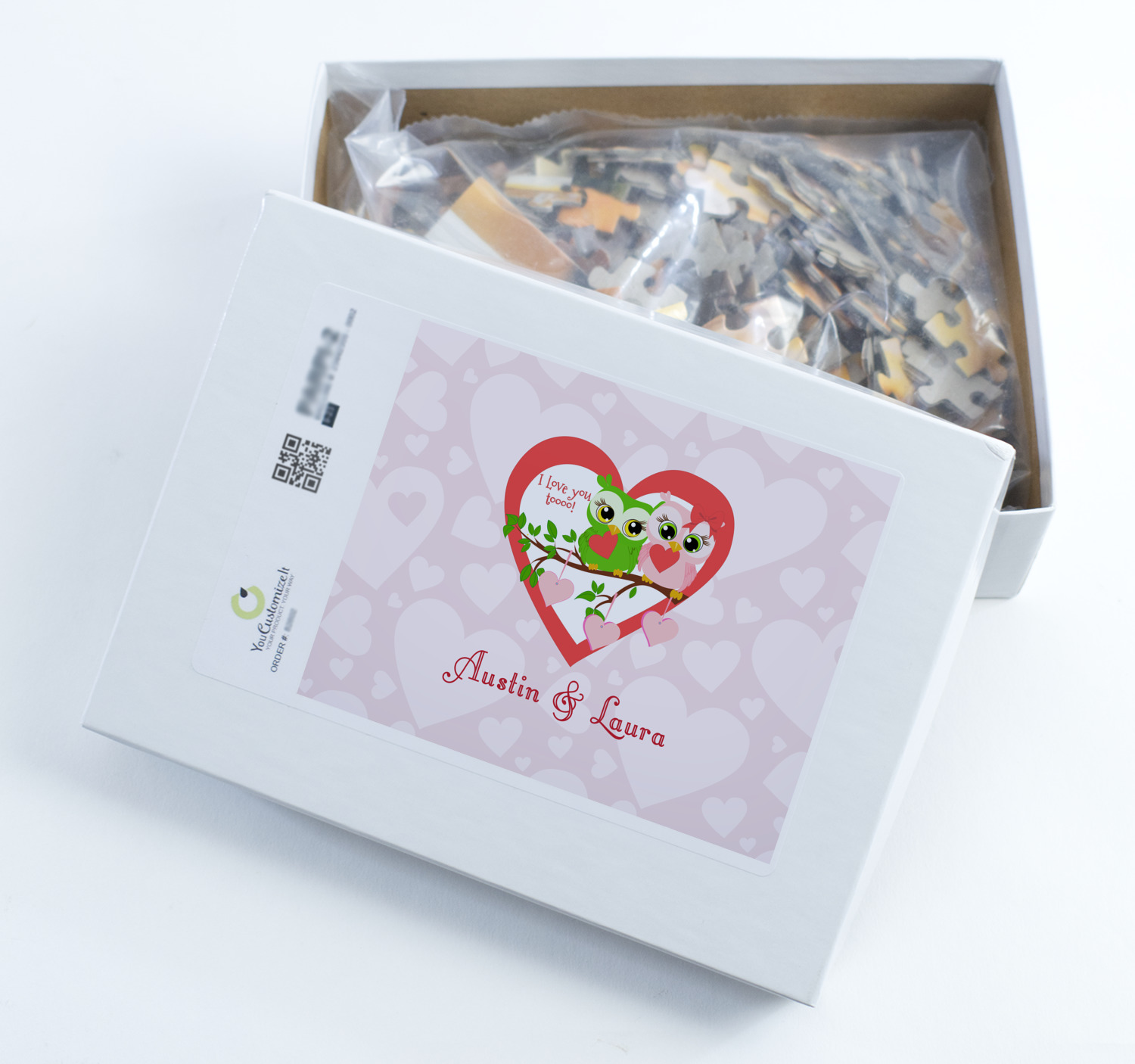 You can also upload your logo or art that you or your kids drew. To create more challenging jigsaw puzzles, you can create a pattern from with your logo or artwork. You can also add other elements such as text or personalization.