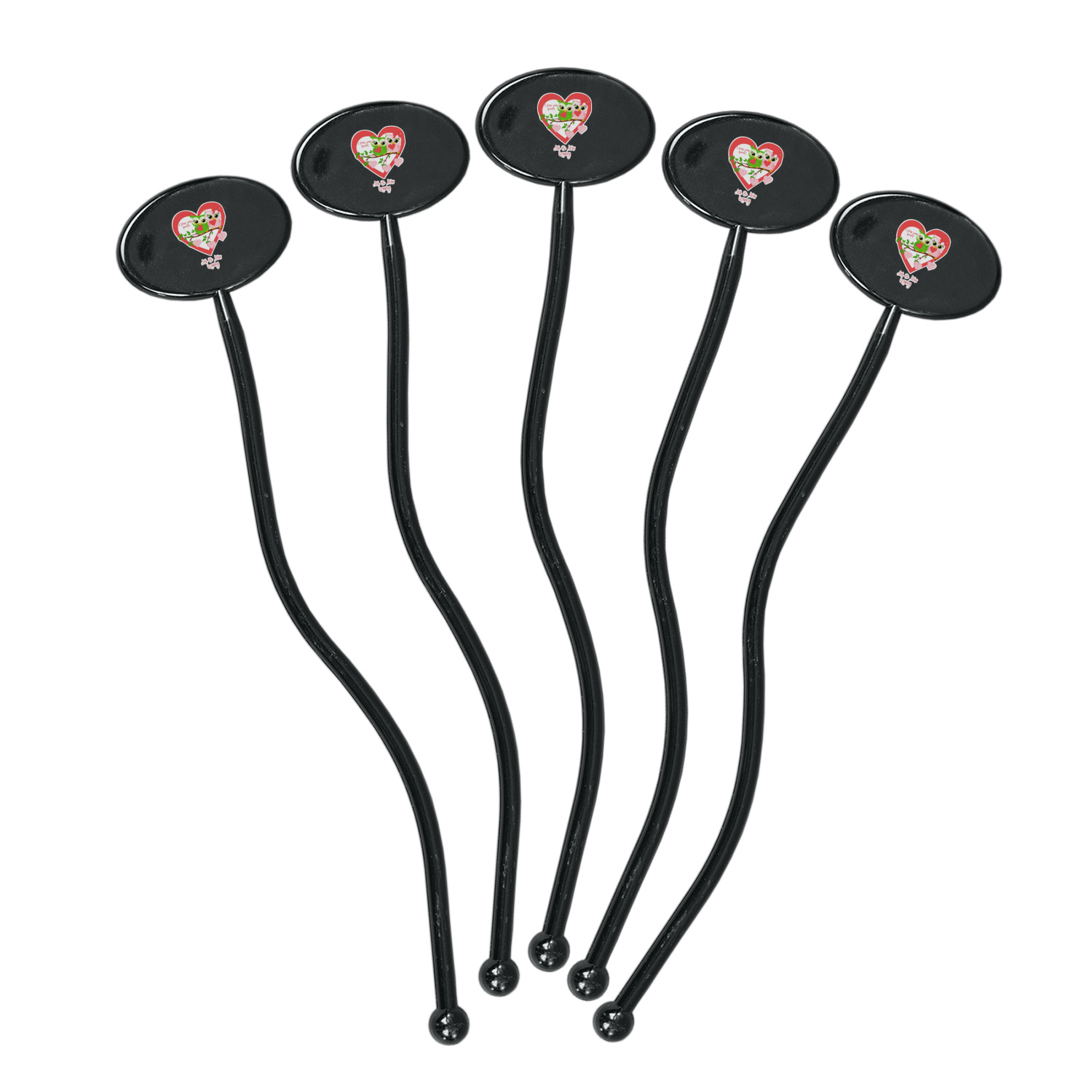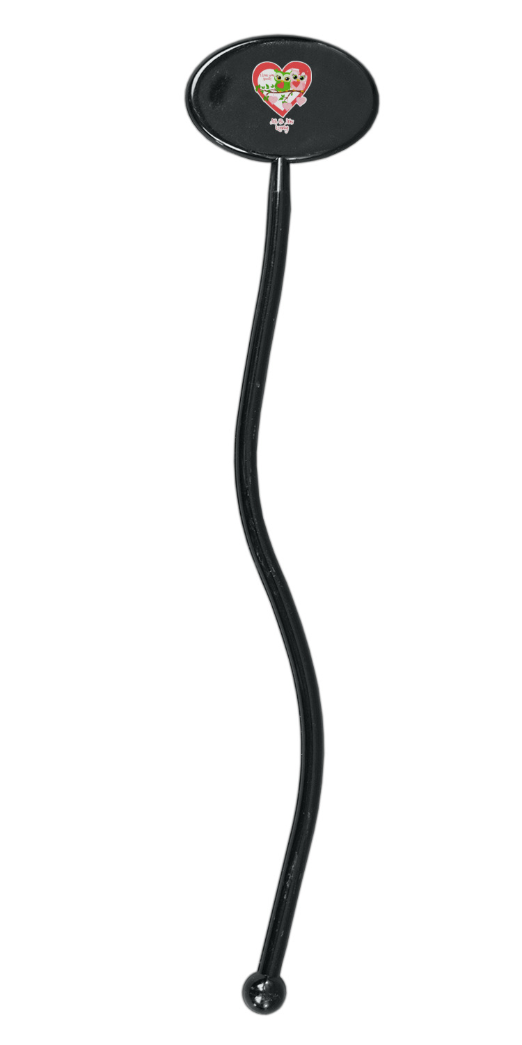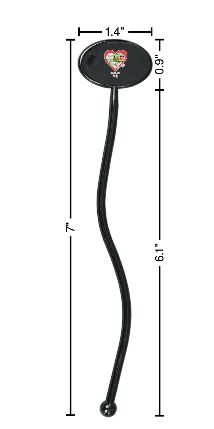 Shape + Symbol Designs for 7" Oval Plastic Stir Sticks - Black - Single-Sided