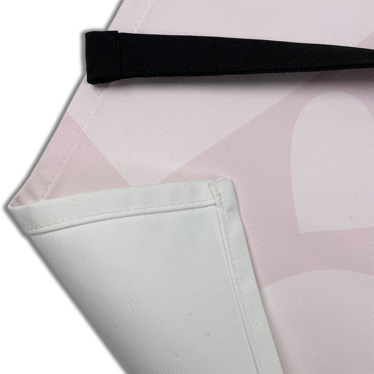 Our aprons are a lightweight yet durable polyester material. We offer two styles of aprons, one without pockets and one with two pockets adorning the center near the waistline. Each apron is one size* and comes with adjustable straps for both the neckline and waist. We print your custom design on the front of the apron to display your creativity!