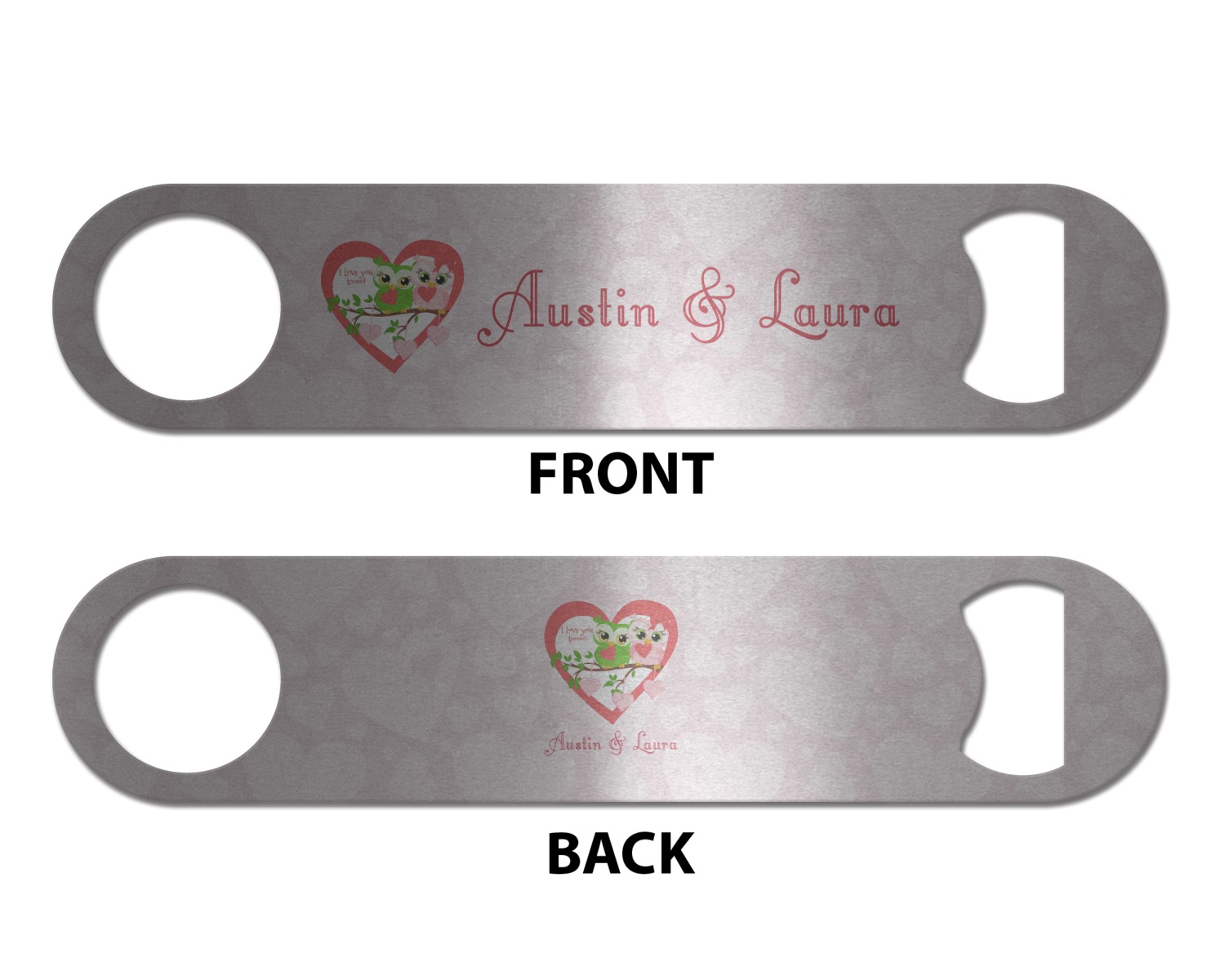 Stop struggling with the caps or your bottled beverages by purchasing one of our personalized bottle openers! These wrench-like custom bar blades are built to last. Customize one for your home's bar, or as a practical gift for a loved one!