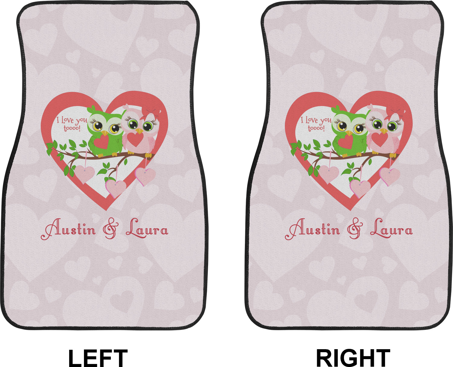 We craft our auto floor mats mats from polyester, apply a black finish to the edges, and lined at the bottom to prevent slippage. These mats protect your floors from grass, mud, and any accidental spills. We display your personalized design on the front face of each mat. The sizes of these car floor liners are standardized to provide a versatile fit for all vehicles. The front rows car mats measure at 17 by 26.5 inches, while the back rows measure at 17 by 13 inches. We sell three packages of car floor mats. You can purchase a pair of front row car mats, a pair of back row car mats, or a set of front row and back row car mats. To make an informed purchase, we recommend measuring the surface area of your car floors.