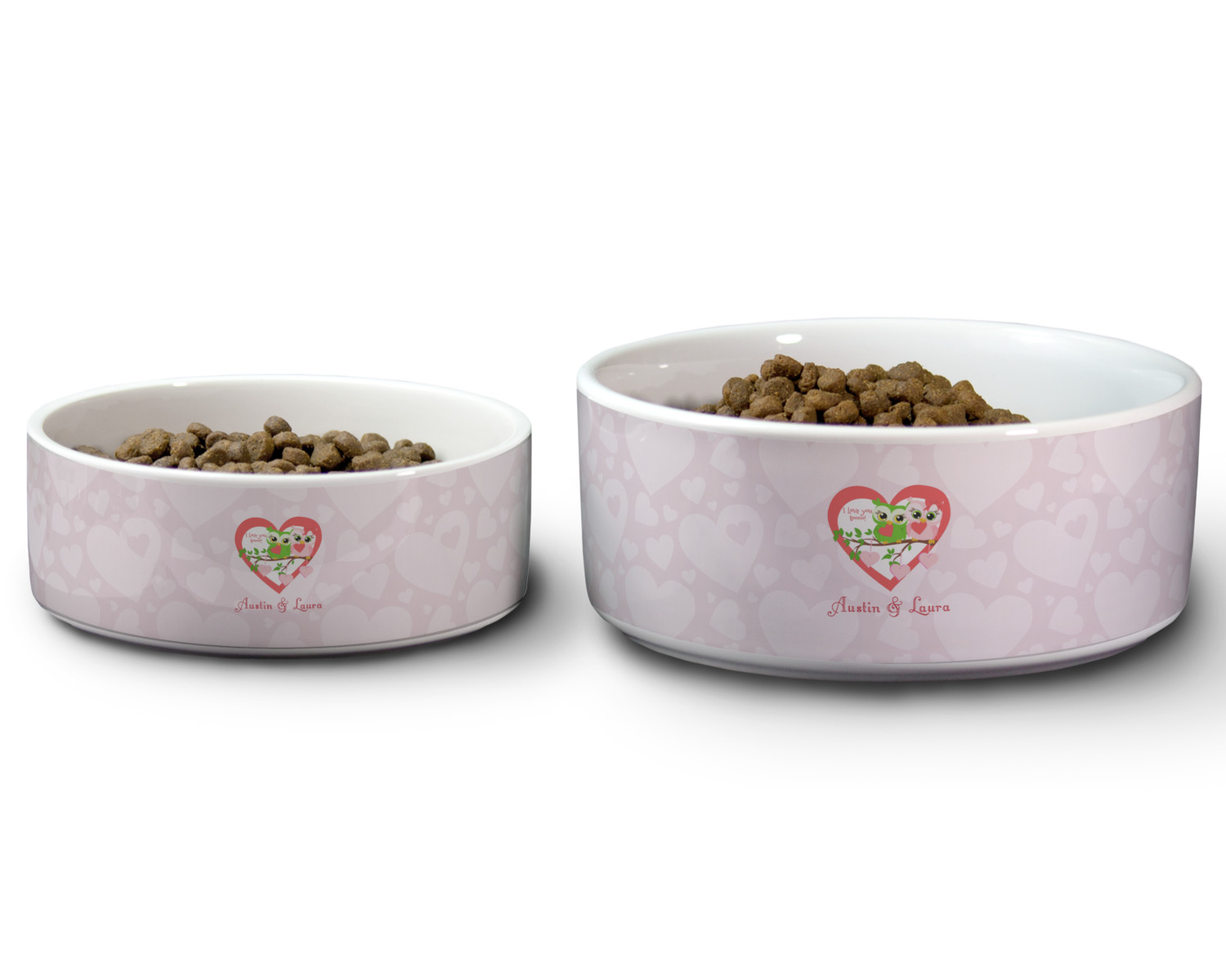 Our customized, ceramic dog bowls allow you to fashion a durable, yet expressive gift for your pet. These bowls are fashionably versatile; they suit both cats and dogs and can hold either food or water. Add your pet's name or favorite color to the design, and spruce up his/her eating area with one or two personalized pet bowls!