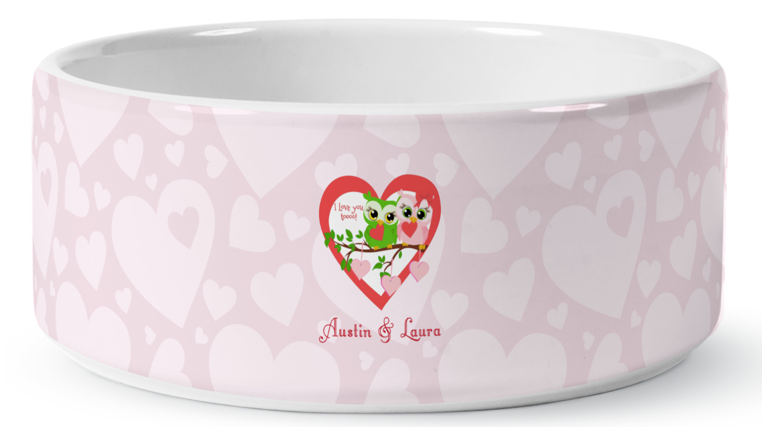 Our customized, ceramic dog bowls allow you to fashion a durable, yet expressive gift for your pet. These bowls are fashionably versatile; they suit both cats and dogs and can hold either food or water. Add your pet's name or favorite color to the design, and spruce up his/her eating area with one or two personalized pet bowls!
