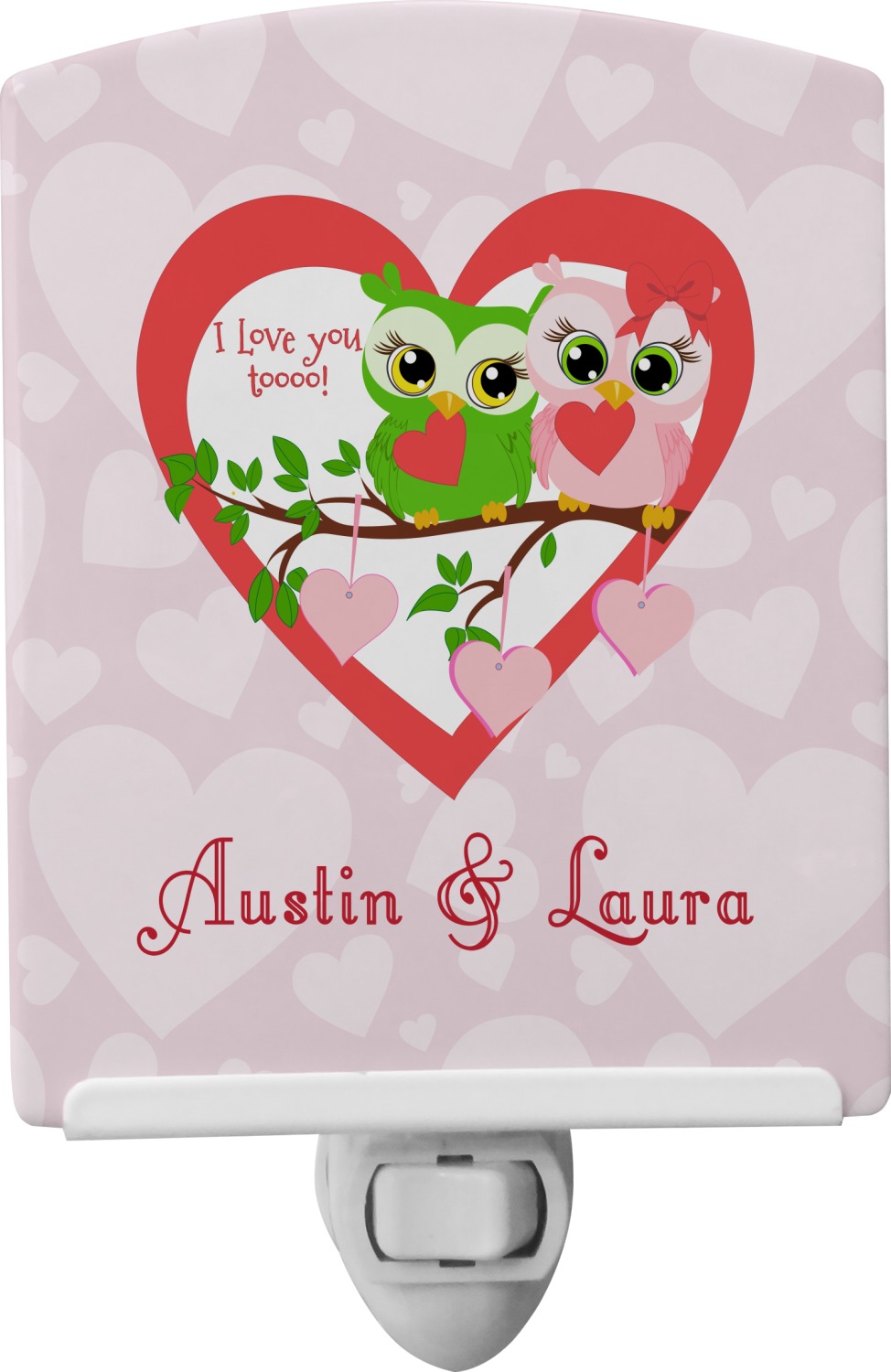 This baby night light is made of durable, ceramic plate that displays your customized design beneath a glossy finish. When this light is turned on, your personalization glows in the dark and offers a bit of light to any room or hallway. The plate also rotates easily. This plug-in night light has a white base with a convenient on and off switch. Additionally, the rotating plug allows you to plug them into US sockets horizontally or vertically. If your child outgrows the design years into the future, you can easily unscrew the plate and use it as a plain nightlight. With your purchase of this outlet night light, we include a 7-watt bulb.