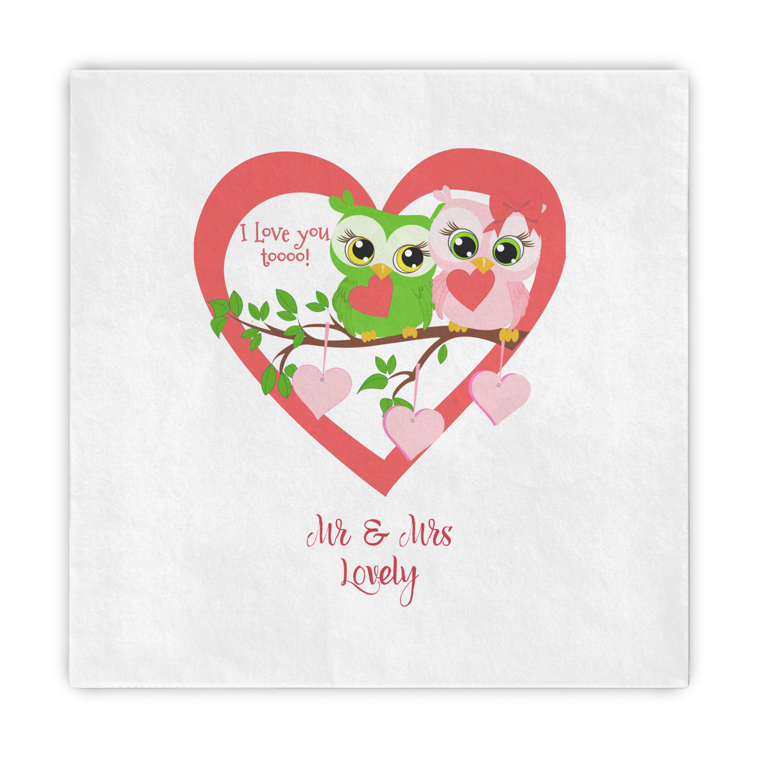 This sweet design, complete with adorable owls hooting to each other, "I love you toooooo!," is sure to make her heart melt. With white hearts on a pale pink background, it is just perfect for Valentine's Day.