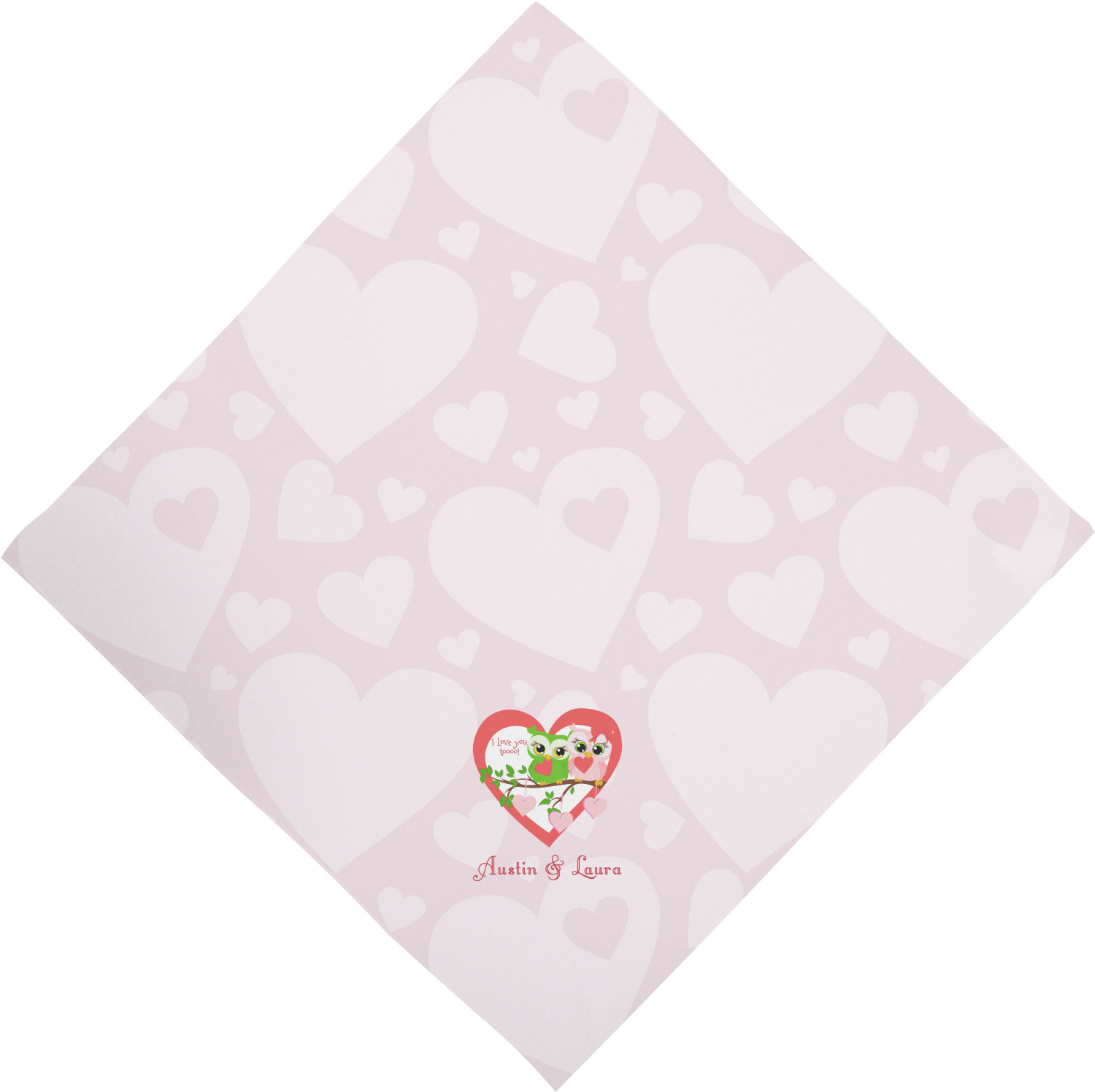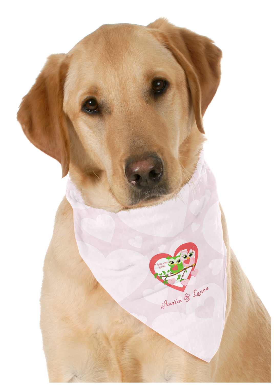 This beautiful pet bandana really is the perfect accessory. It is made from a silky feeling polyester and measures at approximately 23" x 23". Your personalization will be printed on a diagonal, so that you are able to read the personalization when folded into a triangle. This bandana fits best on large dogs, but can be folded smaller if there is no personalized text to fit smaller pets.