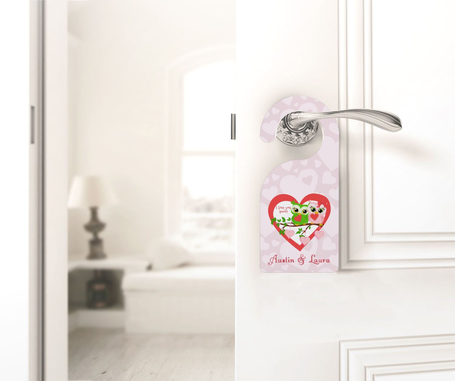 Decorate your door handles with one of our door hangers! These multi-purpose doorknob hangers can be used in a variety of situations; kids can use them to mark their rooms, parents can use them to keep privacy, and they can be used on the doors of nurseries to indicate when the baby is sleeping. Customize a few for some of the rooms in your house today! You could even give these as gifts; give one to the newlyweds in your life, or to a college student so they can use them in their dorm!