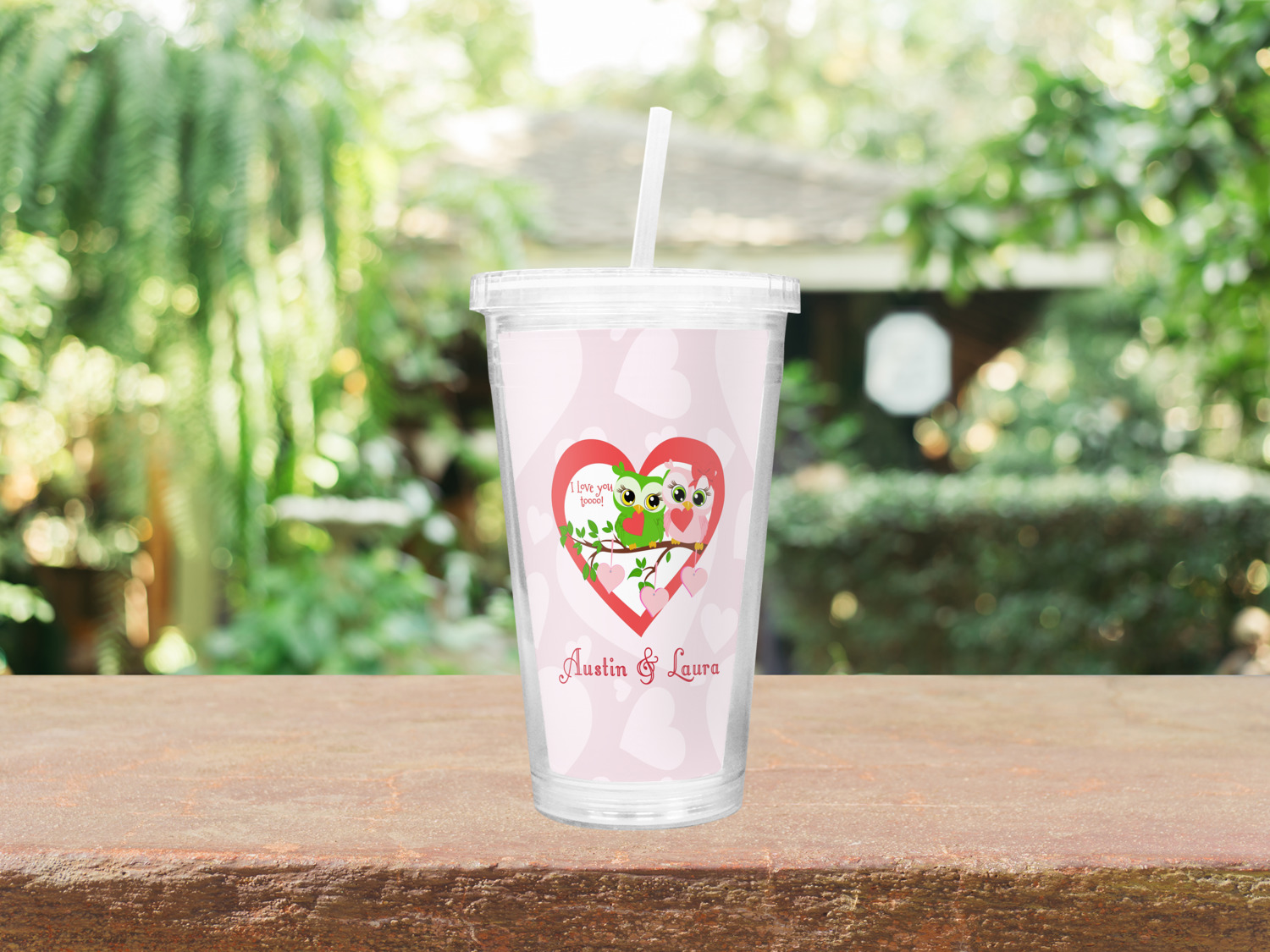 These tumblers are customized for you with a printed insert between the two walls of the cup. The lid screws on tight and helps to keep your drink cold.