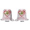Our drawstring backpacks are available in 3 sizes. Small is approx 15in tall by 13in wide. Medium is approximately 18in tall by 17in wide. Large is 23in tall and 19in wide.