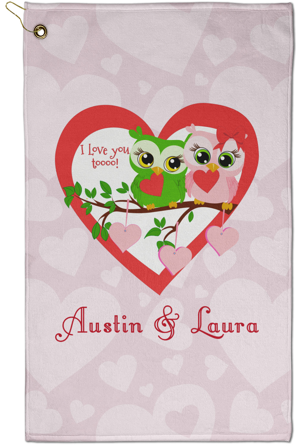 This sweet design, complete with adorable owls hooting to each other, "I love you toooooo!," is sure to make her heart melt. With white hearts on a pale pink background, it is just perfect for Valentine's Day.