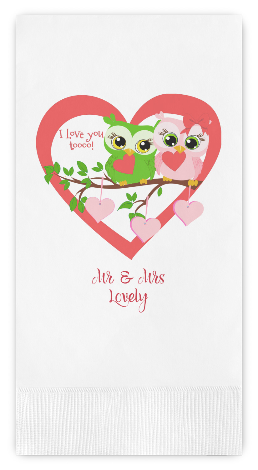 This sweet design, complete with adorable owls hooting to each other, "I love you toooooo!," is sure to make her heart melt. With white hearts on a pale pink background, it is just perfect for Valentine's Day.