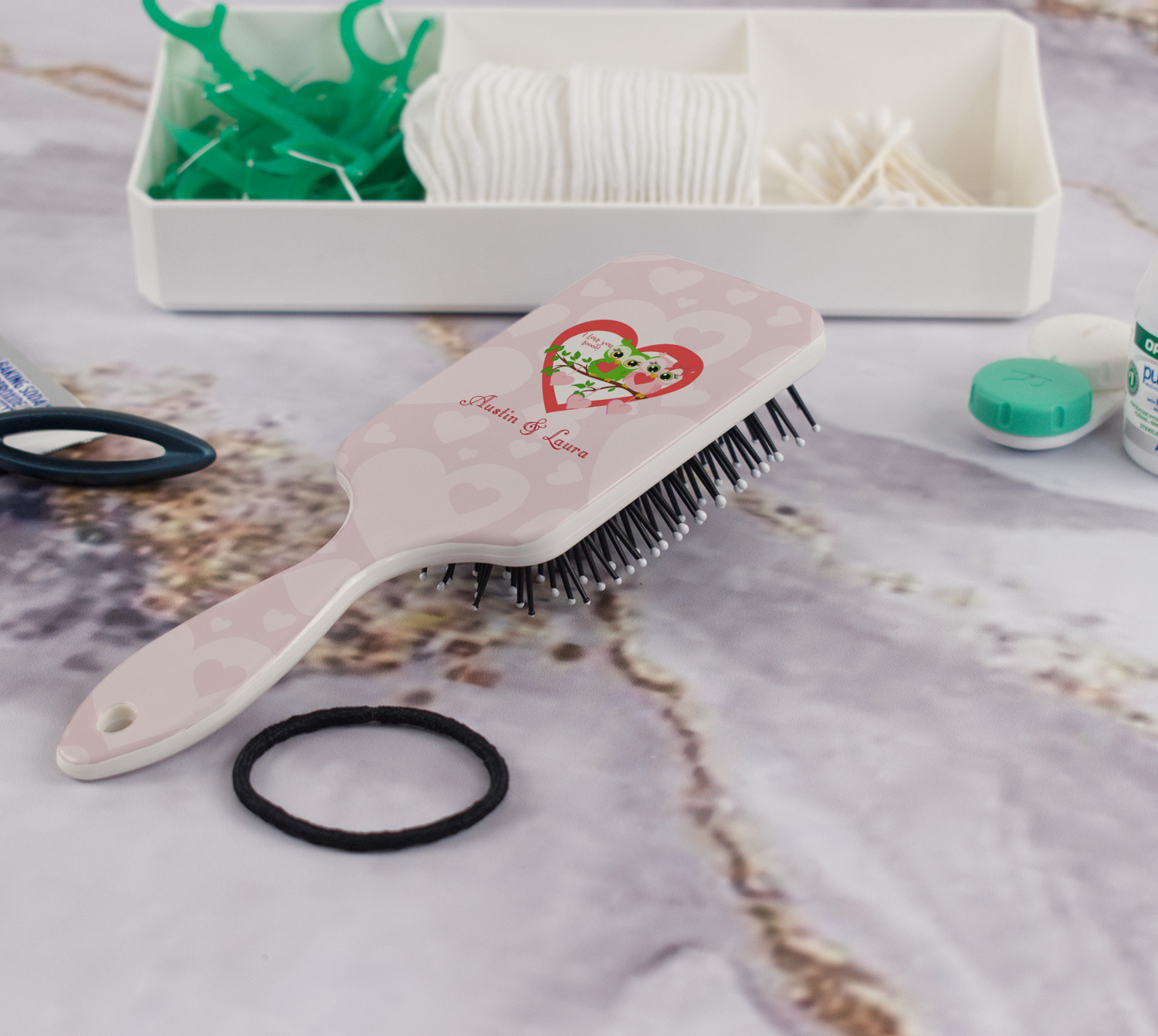 Our paddle style customizable hair brushes are perfect for all hair types- straight, curly, wavy, long, short, thick or textured.