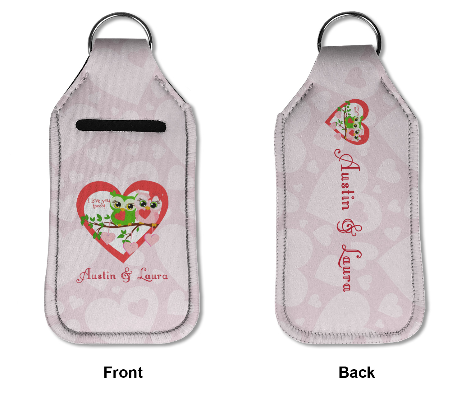 Each hand sanitizer holder comes with its own empty travel-sized, refillable hand sanitizer sure to fit snug in your customized sanitizer case! Our hand sanitizer cases are a durable, yet soft neoprene material sure to last any daily activities or travel agenda. Customize and personalize a hand sanitizer bottle holder with one of our two sizes - small (4.25" x 2.25") or large (5.5" x 2.5"). Each travel sanitizer holder comes with a keyring for attachment on bags, keys, or more!