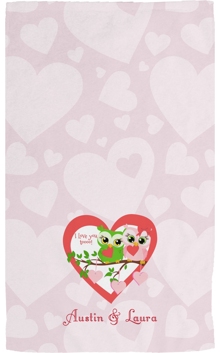 This sweet design, complete with adorable owls hooting to each other, "I love you toooooo!," is sure to make her heart melt. With white hearts on a pale pink background, it is just perfect for Valentine's Day.