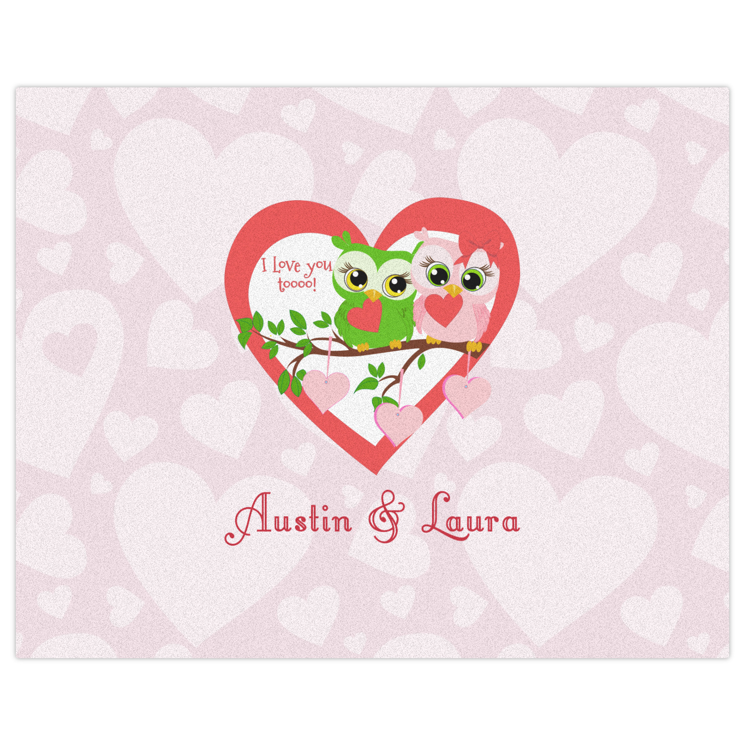 This sweet design, complete with adorable owls hooting to each other, "I love you toooooo!," is sure to make her heart melt. With white hearts on a pale pink background, it is just perfect for Valentine's Day.
