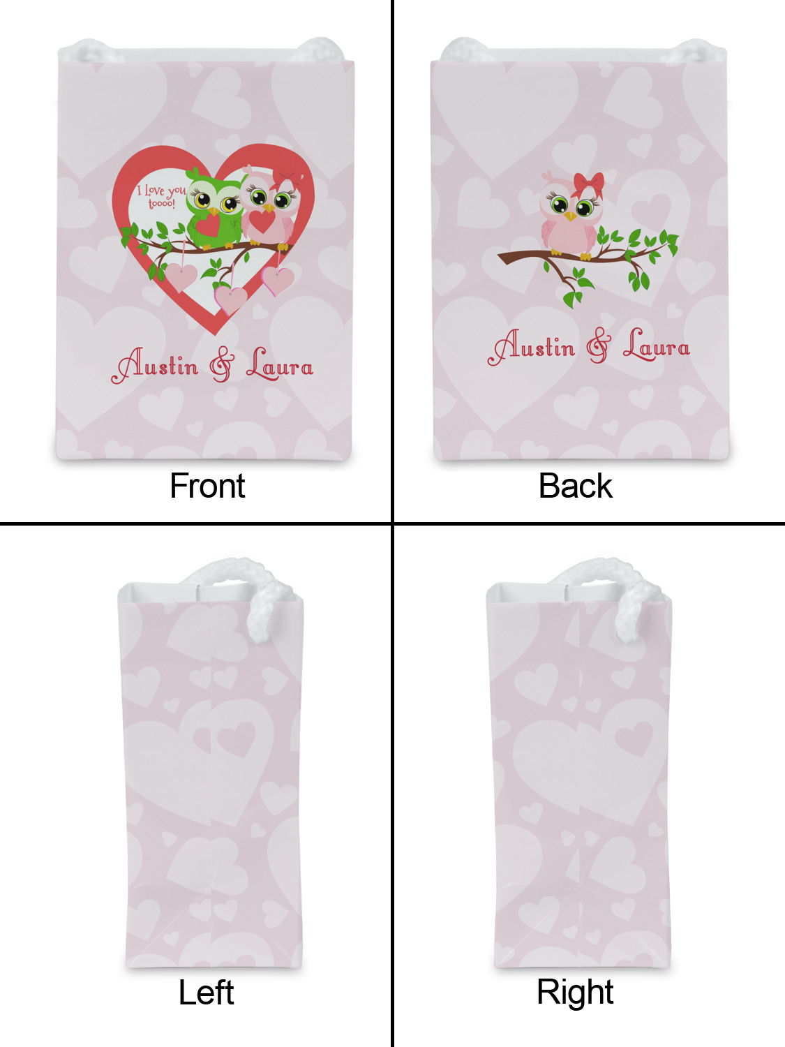 You can design a your gift bag by customizing one of our design templates. Our design studio enables you to customize your design - you can change any part of the design template. You can also upload a photo, logo or any image.