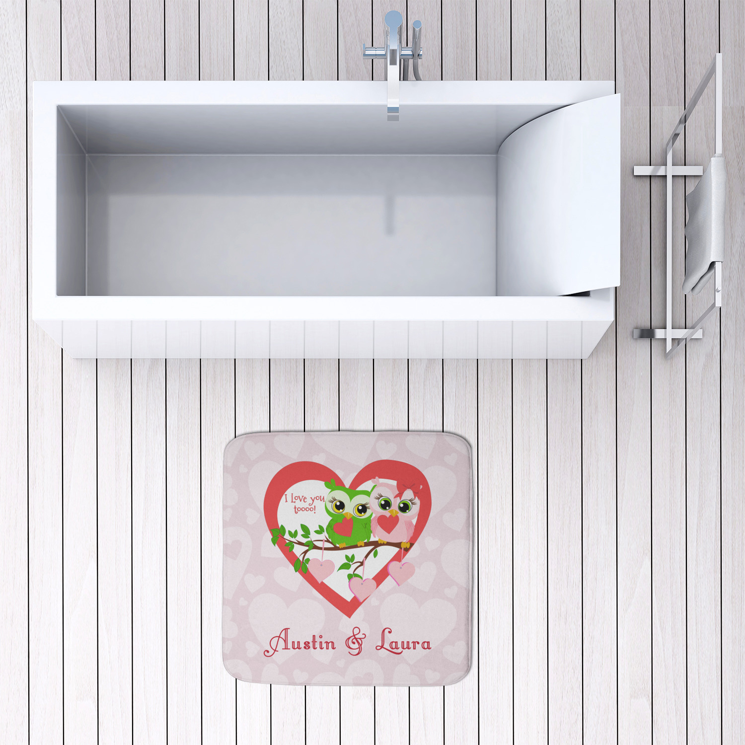 Treat yourself by stepping out of your shower or bath onto one of our lavish memory foam bath mats! These personalized bath mats will add a charming splash of color to any of your bathrooms! Design them to coordinate with your bathroom's current decor, or with vibrant patterns and colors so it can serve as an accent piece on your floor!