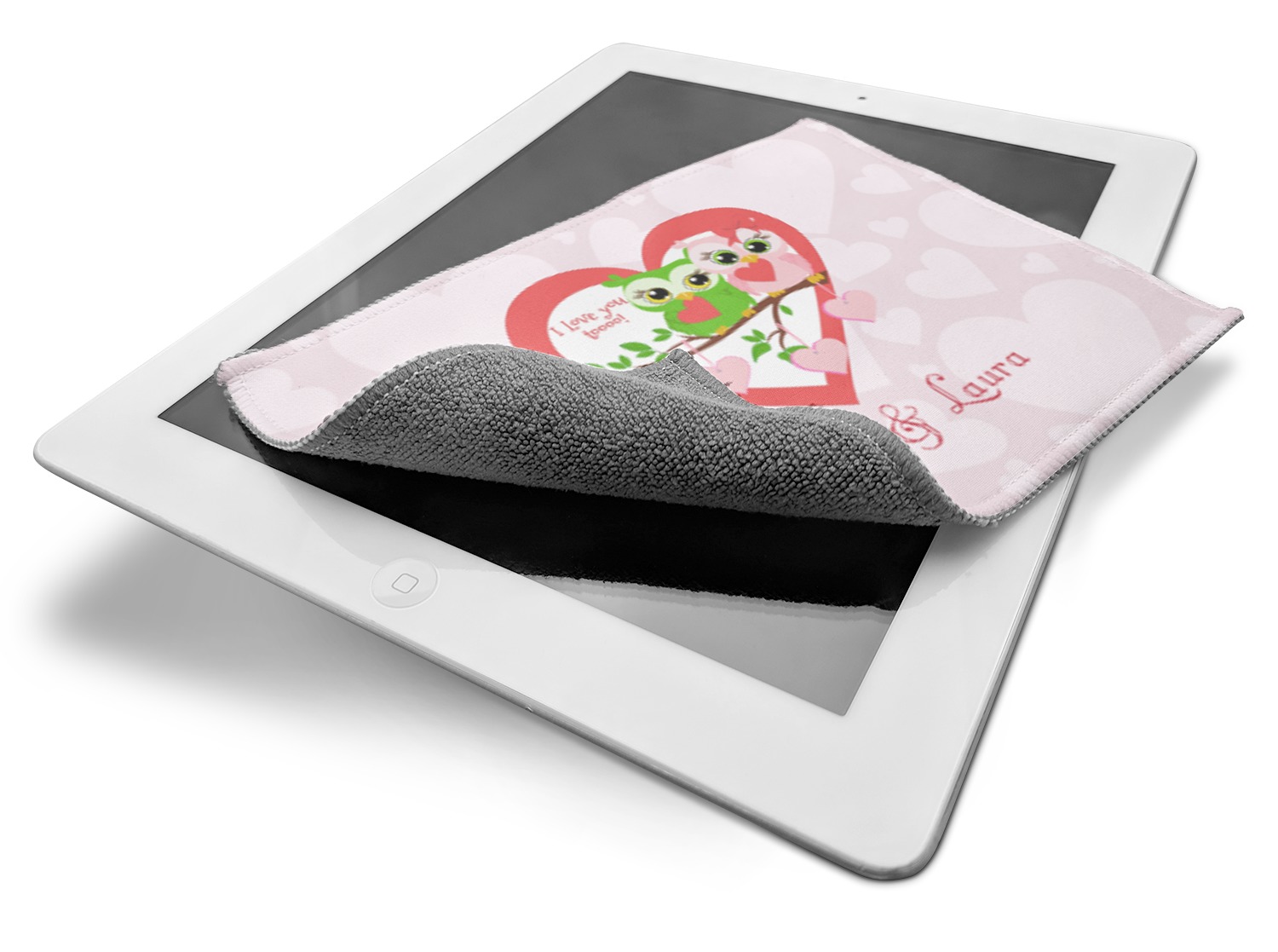 The back of this cleaning cloth is made from a gentle, grey microfiber material, that is masterful at removing smudges, grease, and fingerprints from lenses or electronic screens. The front side of the screen cleaner displays your personalized design in vibrant color. A beautiful stitch lines the edges and secures the microfiber to the polyester top. We provide you with the option of customizing this screen horizontally or vertically, depending on your preferences.