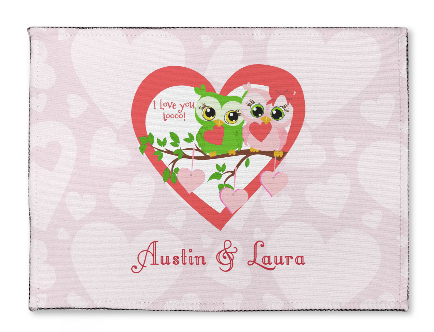 This sweet design, complete with adorable owls hooting to each other, "I love you toooooo!," is sure to make her heart melt. With white hearts on a pale pink background, it is just perfect for Valentine's Day.
