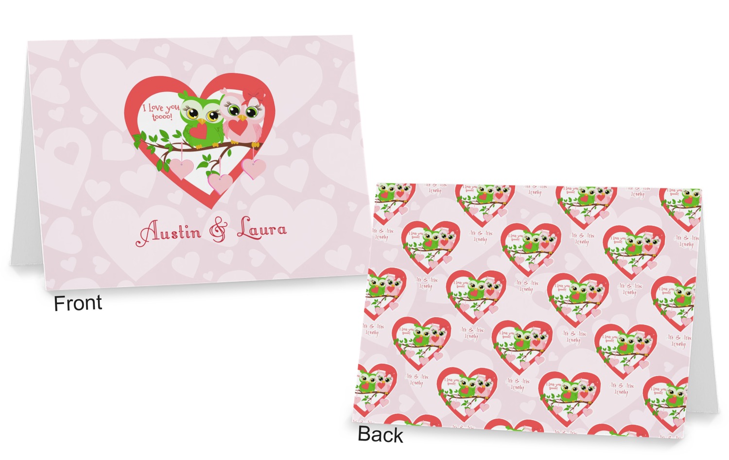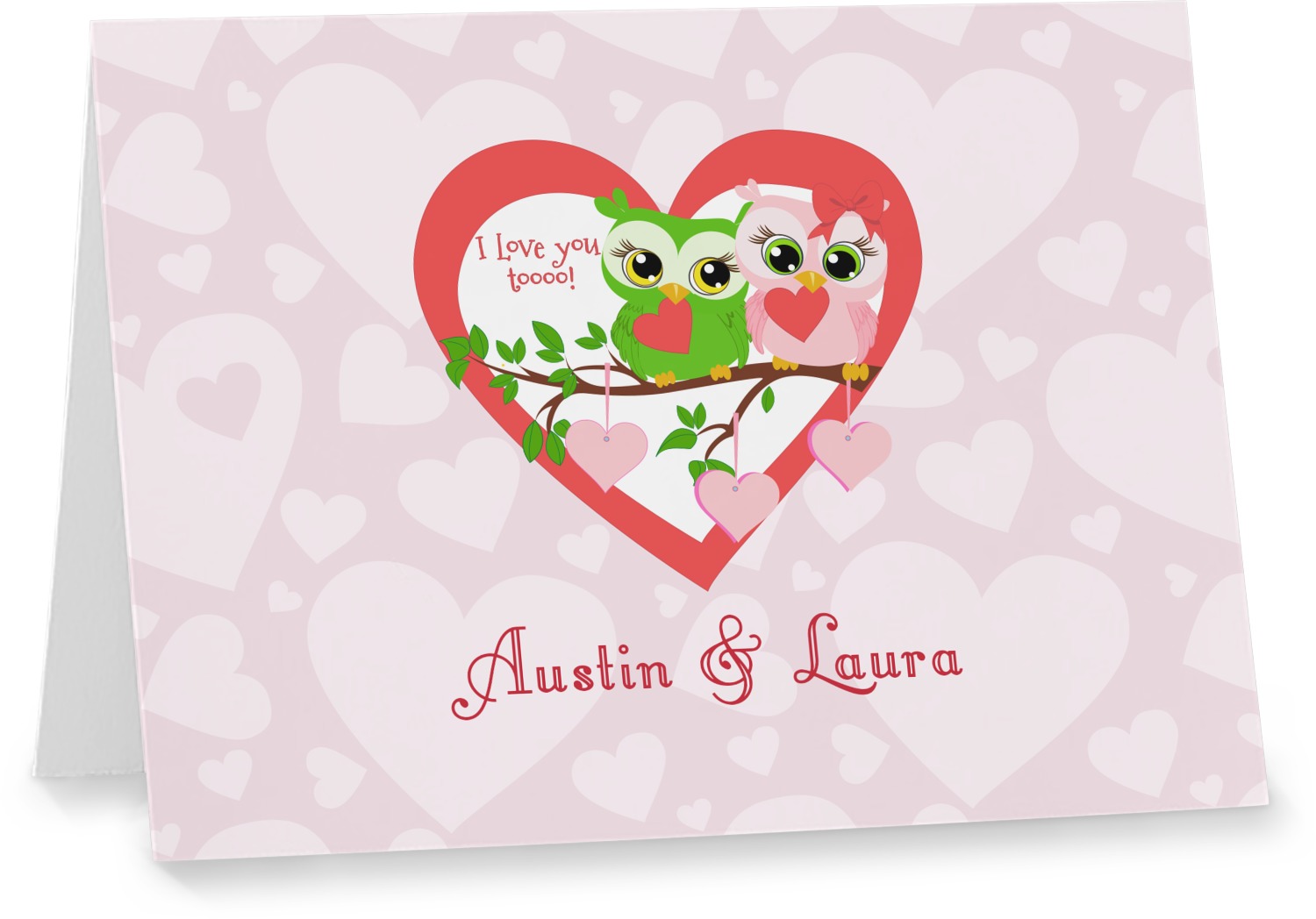 This sweet design, complete with adorable owls hooting to each other, "I love you toooooo!," is sure to make her heart melt. With white hearts on a pale pink background, it is just perfect for Valentine's Day.