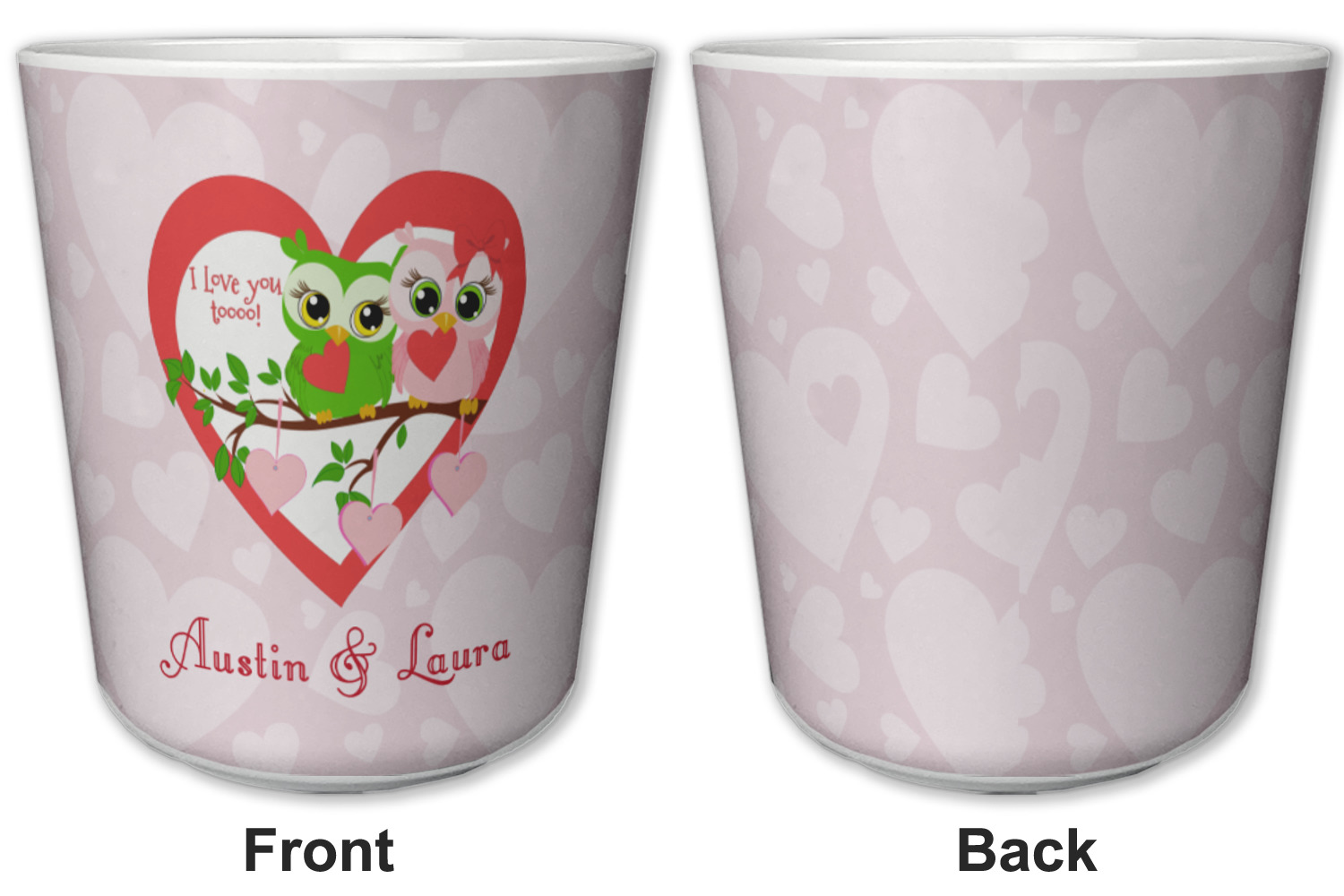 Made from a durable plastic, these tumbler cups are strong enough to withstand daily use and are perfect for young children. Each of these personalized plastic cups holds 6 ounces and measure at approximately 3" x 3" x 3.25". Place them in the bathroom as a rinsing cup, or give them to your kids during mealtimes. These 6 oz. plastic cups are BPA free, microwave and dishwasher safe, for your convenience. Your personalized design is displayed across the entire outside of this cup, while the inside is white in color to make your customization really stand out.