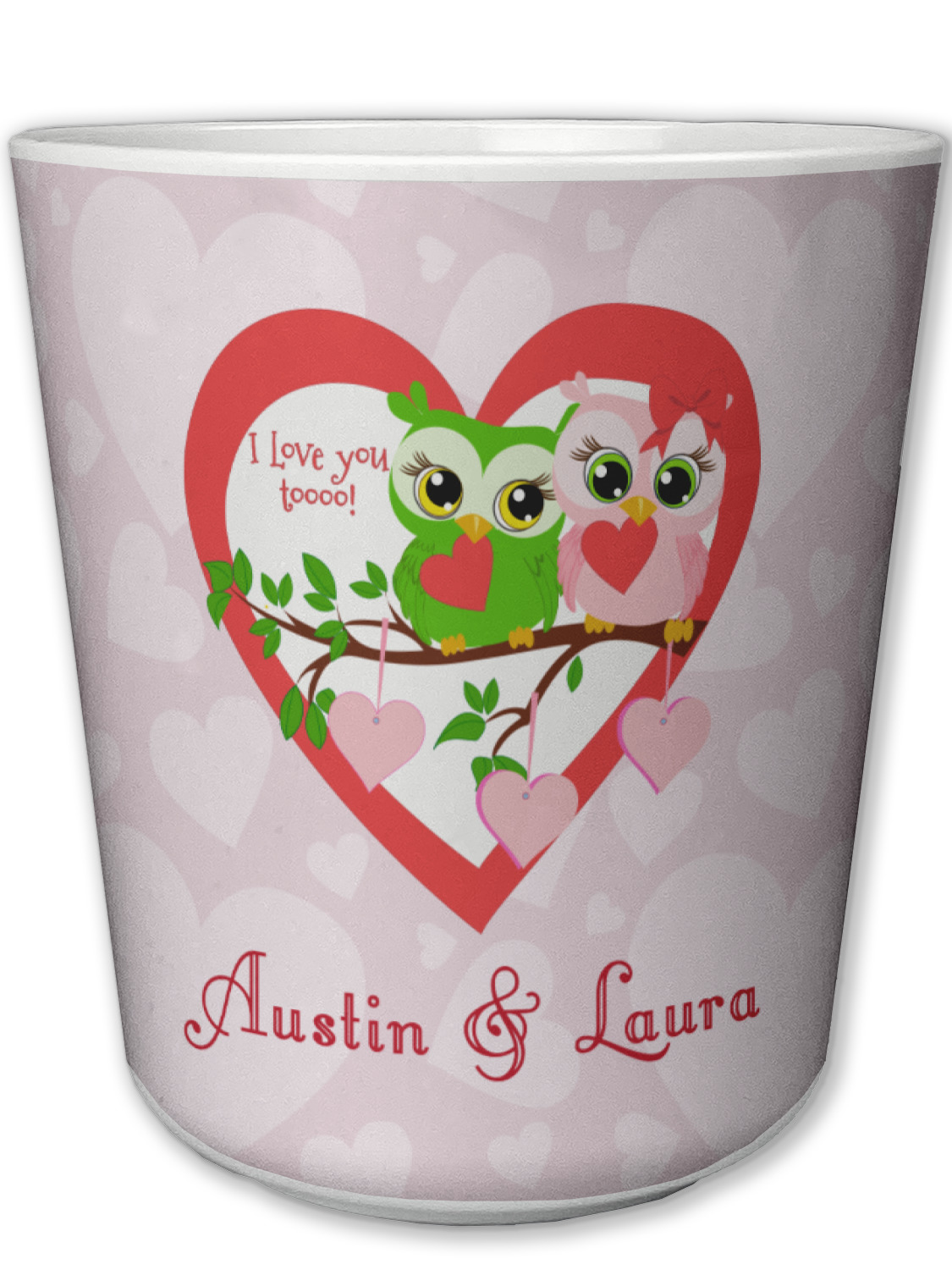 This sweet design, complete with adorable owls hooting to each other, "I love you toooooo!," is sure to make her heart melt. With white hearts on a pale pink background, it is just perfect for Valentine's Day.