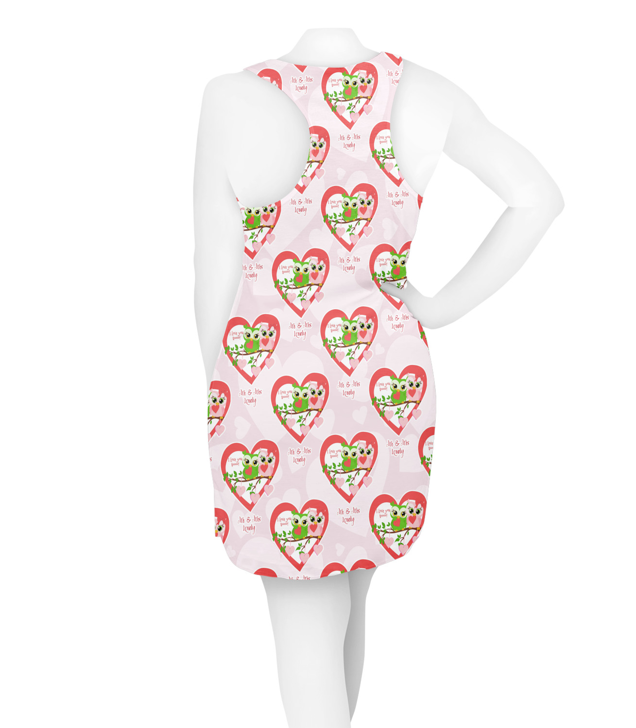 Ever want to dress up a little, but don't feel like wearing an uncomfortable dress? This racerback dress is the perfect thing! It's comfortable and adorable. You can wear it alone or with your favorite leggings. The best part? It's personalized!