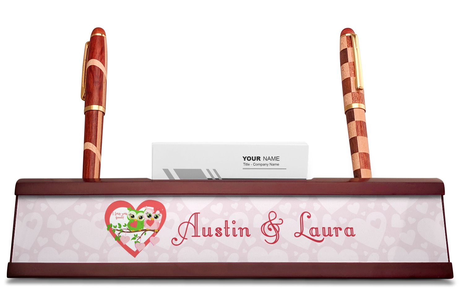 Shape + Symbol Designs for Red Mahogany Nameplates with Business Card Holder