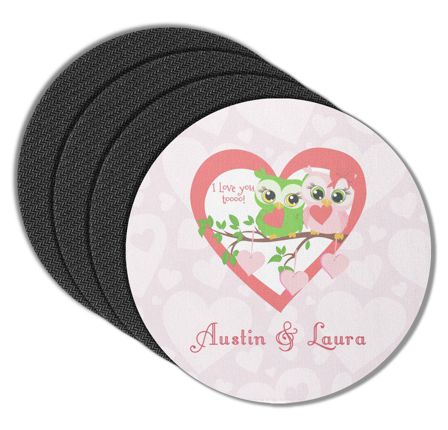 These drink coasters have a smooth, polyester top and a textured, rubber backing on its bottom. The non-slip rubber backing underneath works to keep any spills at bay. At 4 by 4 by 0.25 inches thick, these custom coasters are a suitable size for most drinkware. Your personalization is displayed atop the face of the cup coaster. We sell these rubber coasters in two different shapes: square and round. You can buy each shape as singulars or as a set of 4.