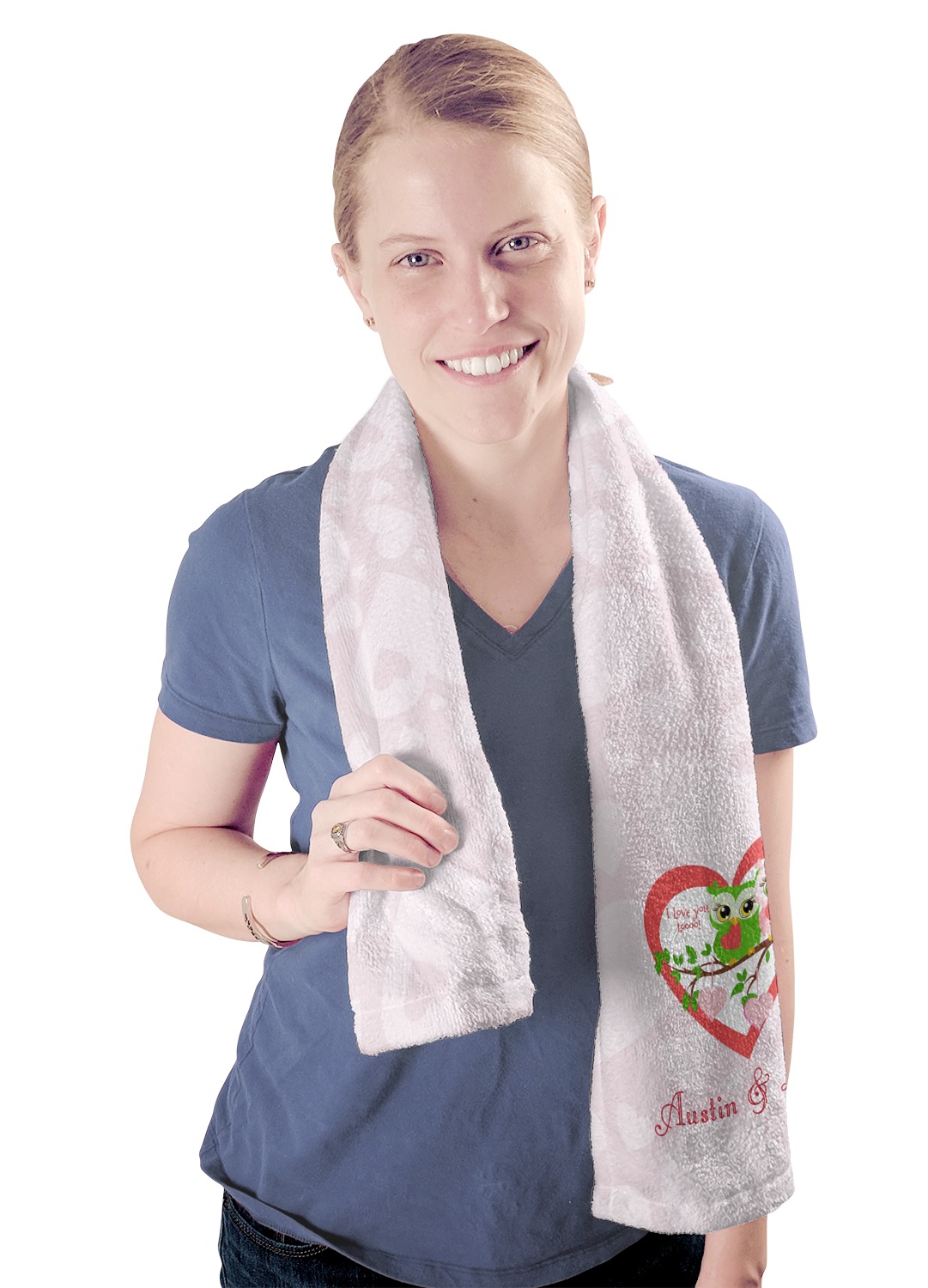 These towels are 44" x 12", which are the perfect size for hanging around your neck on the treadmill or wiping your brow after a hard workout. They are full-print towels with your very own design printed right on the front! They are perfect for soaking up moisture and are quite soft against your skin.