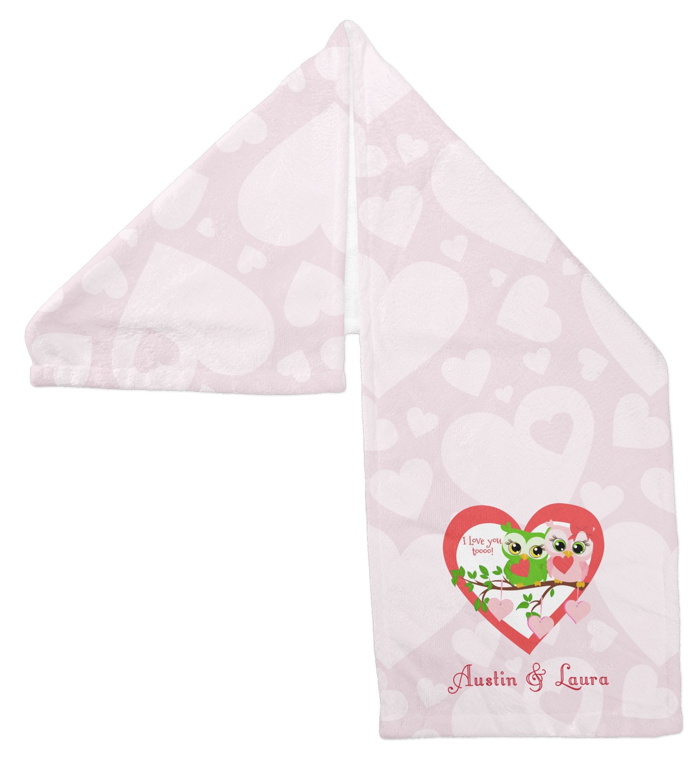 This sweet design, complete with adorable owls hooting to each other, "I love you toooooo!," is sure to make her heart melt. With white hearts on a pale pink background, it is just perfect for Valentine's Day.