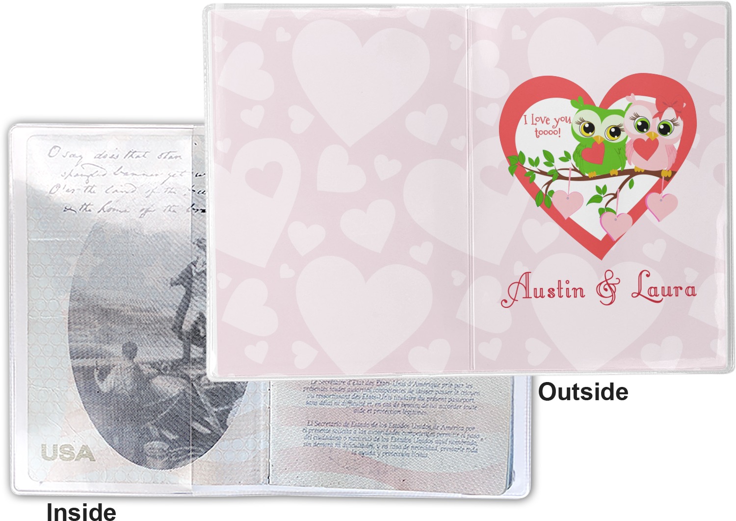 This cover is made of a sturdy clear vinyl with a personalized vinyl insert inside. There is a large and a small pocket on either side to hold the covers of your passport easily and firmly. The passport holder is approximately 7.5" x 5.25", the perfect size to snugly fit your passport. This slim cover is the perfect way to protect your passport without being one more bulky item you have to carry.