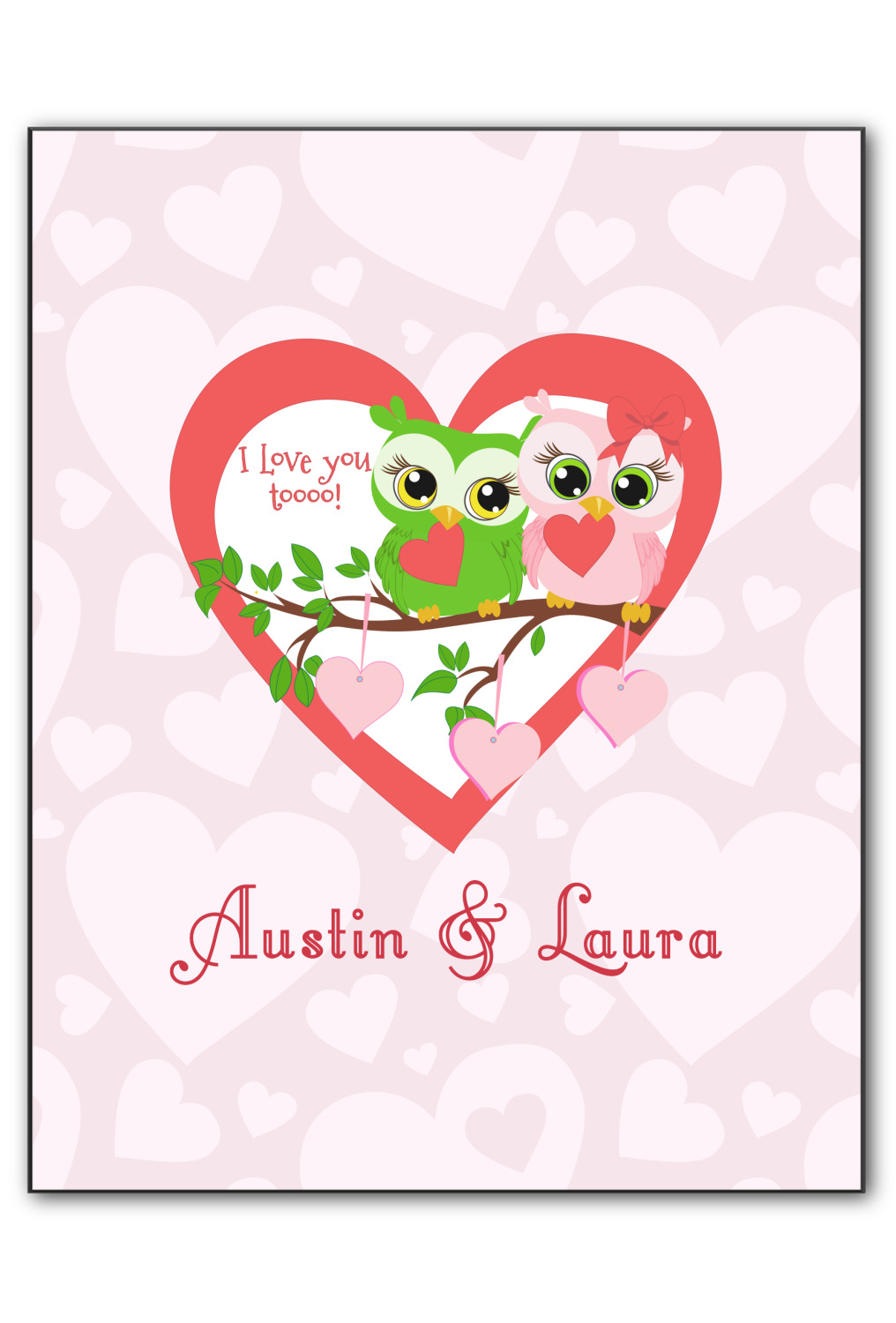 This sweet design, complete with adorable owls hooting to each other, "I love you toooooo!," is sure to make her heart melt. With white hearts on a pale pink background, it is just perfect for Valentine's Day.